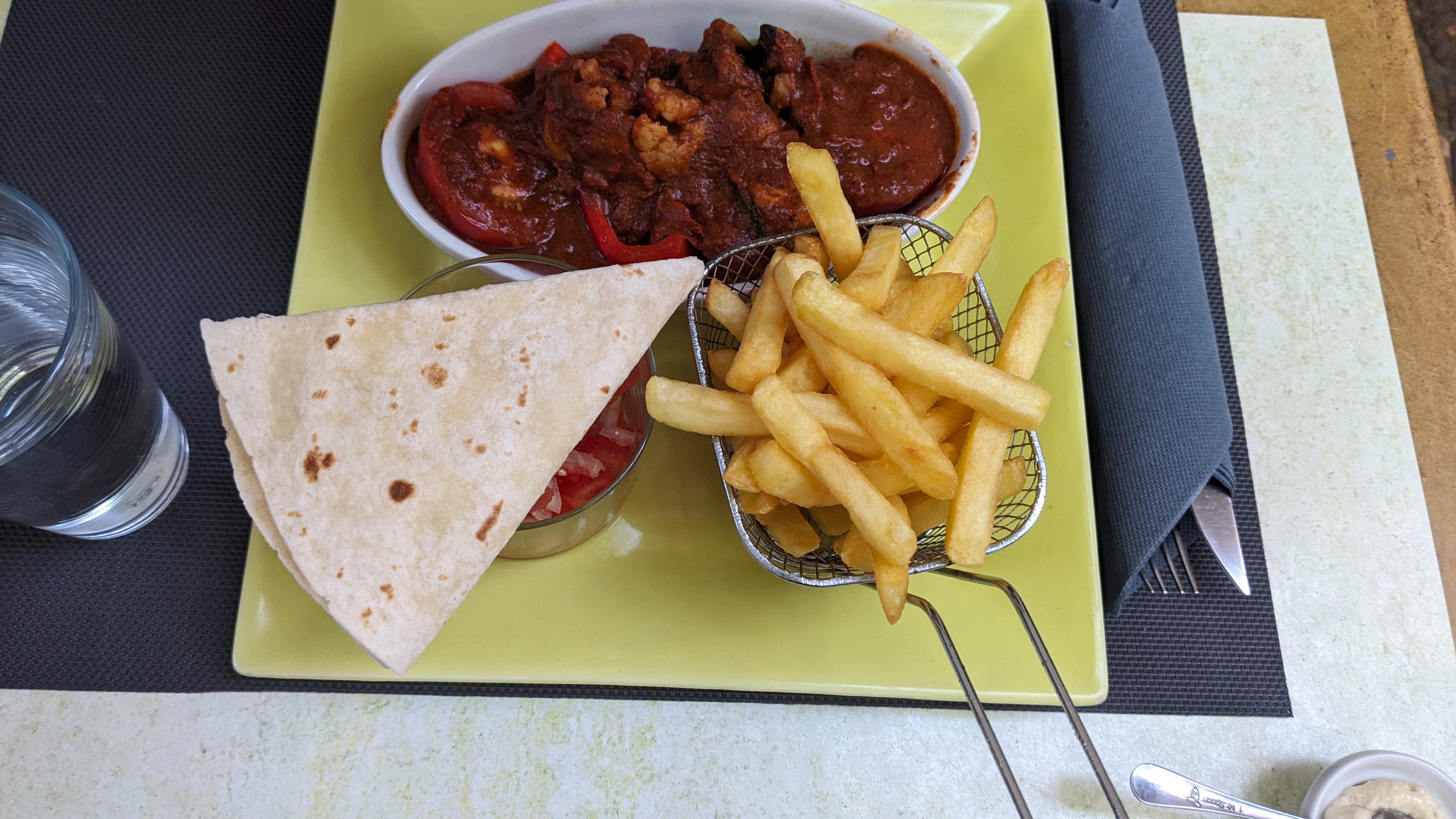 J’ai commandé à emporter et j’ai pris poulet curry avec riz, j’ai eu des frites à la place du riz... Ensuite j’ai pris une salade composée avec œuf dur, charcuterie et fromage, j’ai eu une salade ridicule pour 9€ quand même ! Et il y avait pas d’œuf ni de fromage et même la salade c’était 3 feuilles. Les profiteroles ne sont pas maison, c’est les mêmes que j’achète chez leader price. J’ai voulu aider les restaurateurs pendant cette période difficile et je suis déçue.