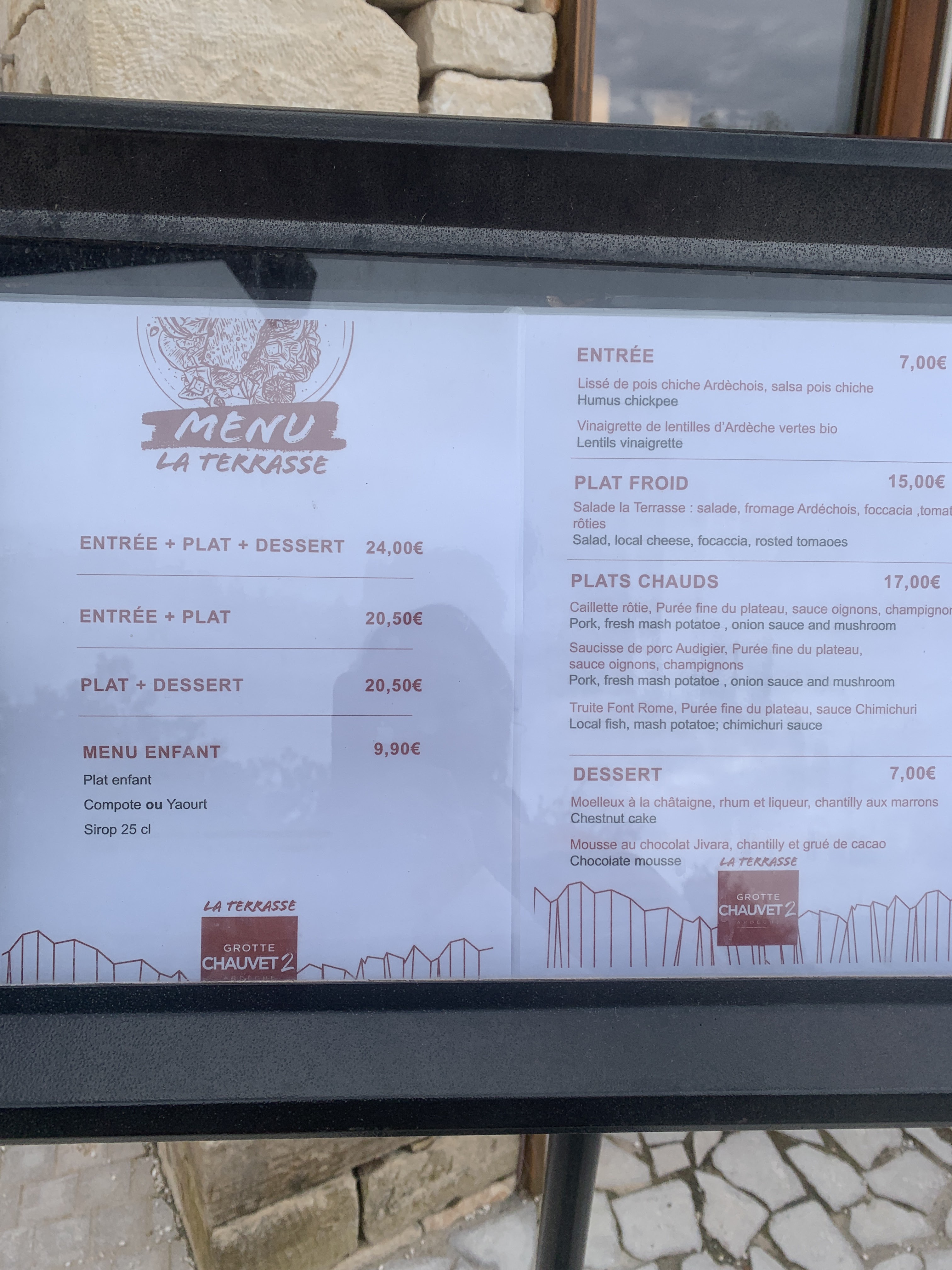 Repas self à la grotte Chauvet 2 d'une qualité incroyable ! Service très rapide, cuisine excellente et prix plus que modérés ! Truite ou caillette pour seulement 13,50€ ou 17€ avec un dessert fait maison (moelleux à la châtaigne et à la crème de marron). Le cuisinier et son équipe étaient très sympathiques et accueillants ! Un grand merci !