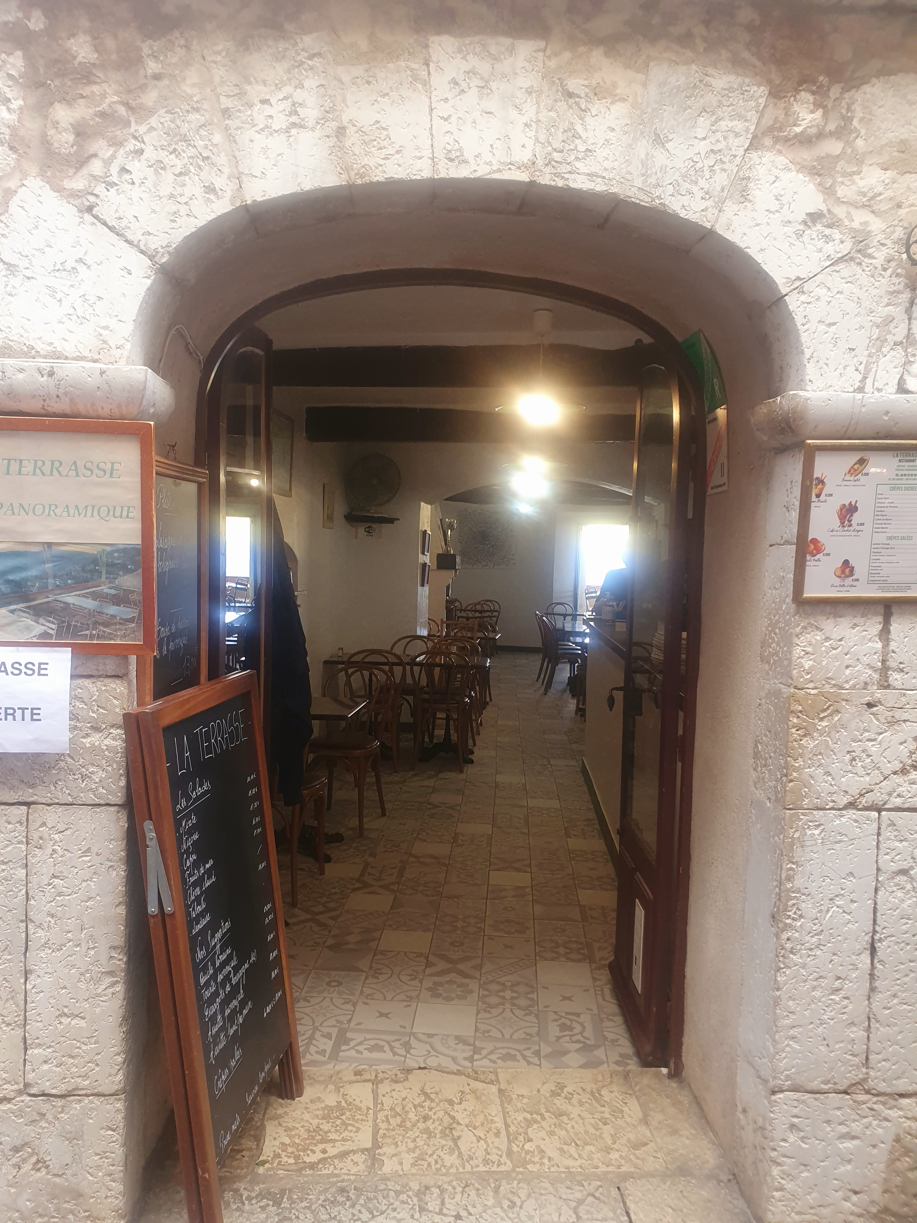 situé au coeur de st. paul de vence ce petit restaurant dispose d'une terrace avec une vue magnifique et très dégagée sur la vallée qui nous emmene au village. Le service est très effiicace, même en pleine saison..les crêpes sont connues, simples mais bien fourrées, les salades sont aussi bonnes pour des prix raisonnables. St. paul de vence est un site très très touristique et en pleine saison c'est possible d'avoir une demi-heure d'attente pour avoir une table.
