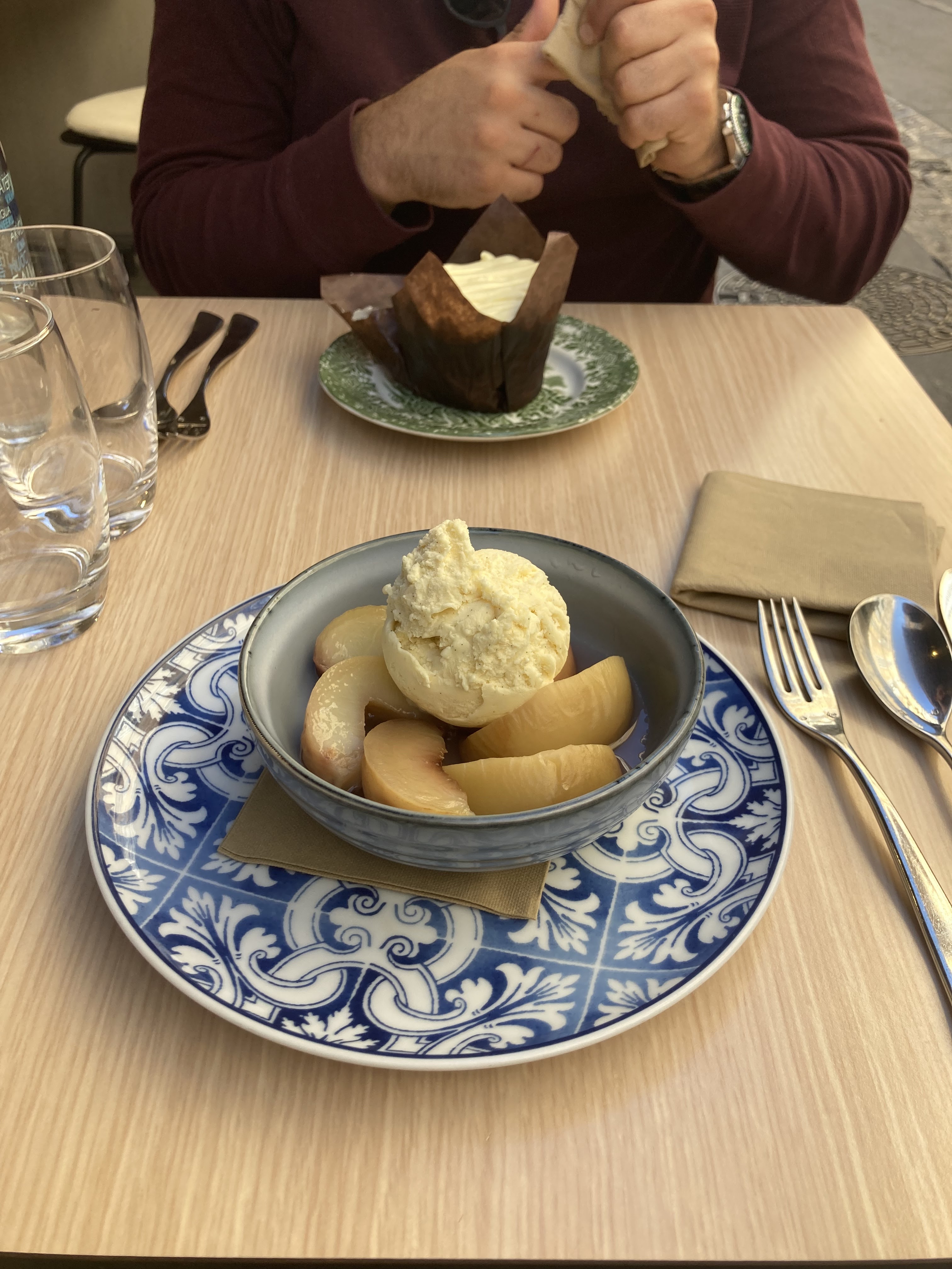 Bon produits de saison et bon choix des vins. J'ai adoré la glace a la verveine et ses pêches. Merci pour ce moment