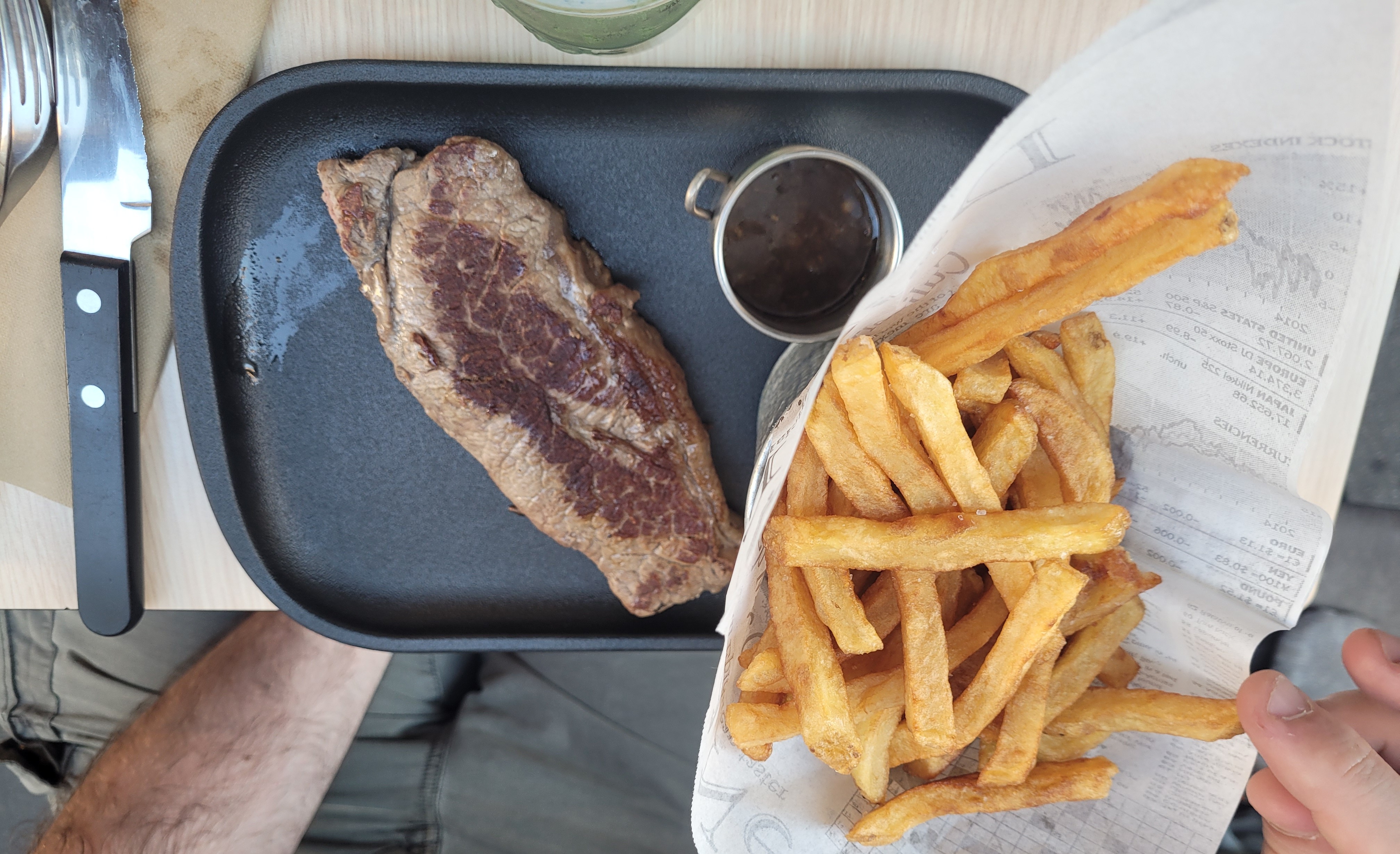 restaurant dans une rue plus calme que les rues environnantes ; repas simple , bien servi , entrée merveilleuse avec des petits poivrons , puis poisson frais , puis dessert adorable nommé mississipi . Repas bon et prix correct ; nous reviendrons sans hésitation .