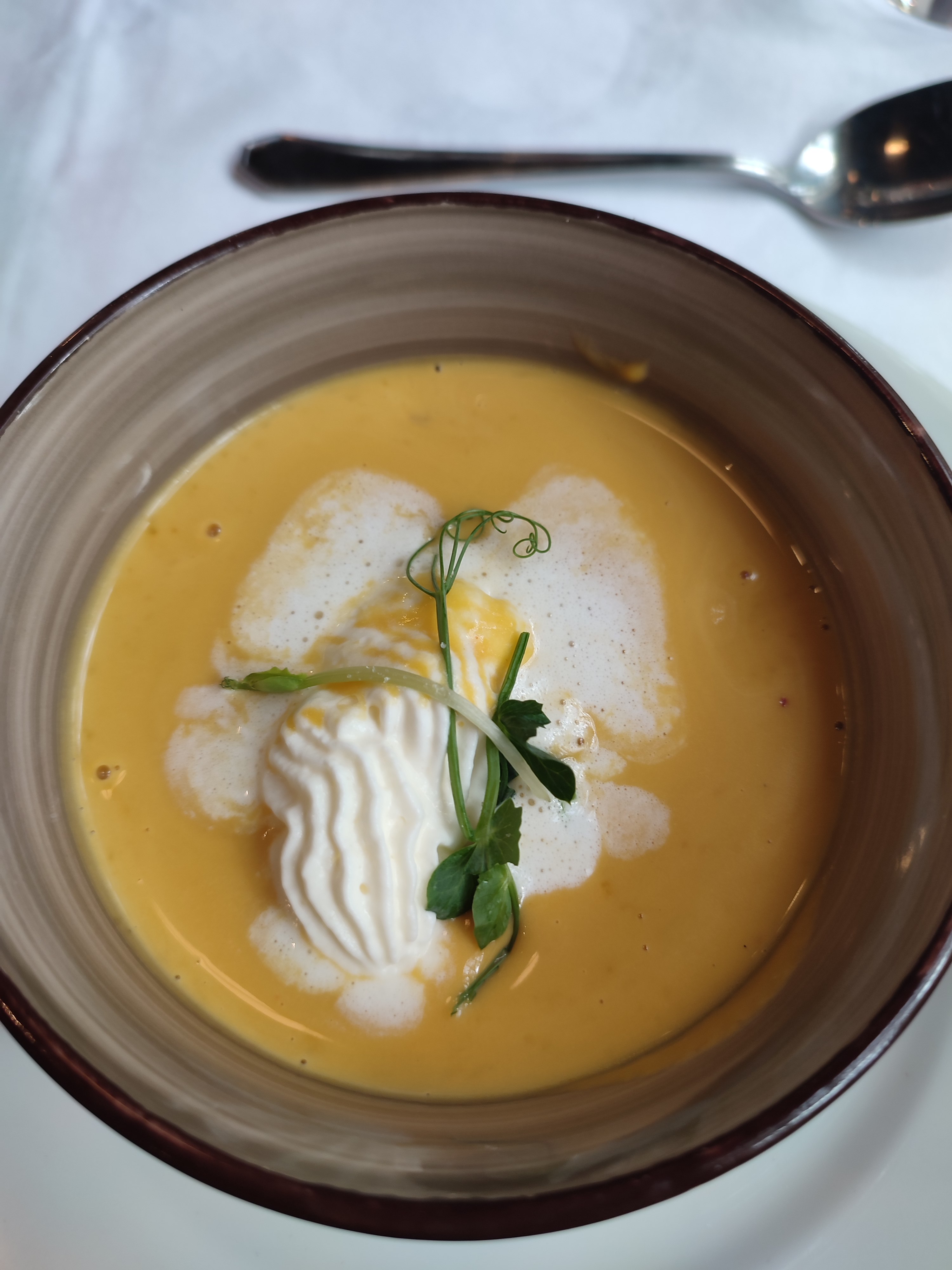 J'y suis allé dîner avec ma copine et c'était très très sympa. Pas de 0 8 15 plats mais des combinaisons intéressantes. La soupe aux carottes vertes en particulier m'a époustouflé. L'espace extérieur était génial, malheureusement il faisait déjà trop froid pour nous le soir ? Le service, y compris le chef, était très authentique et très sympathique.
