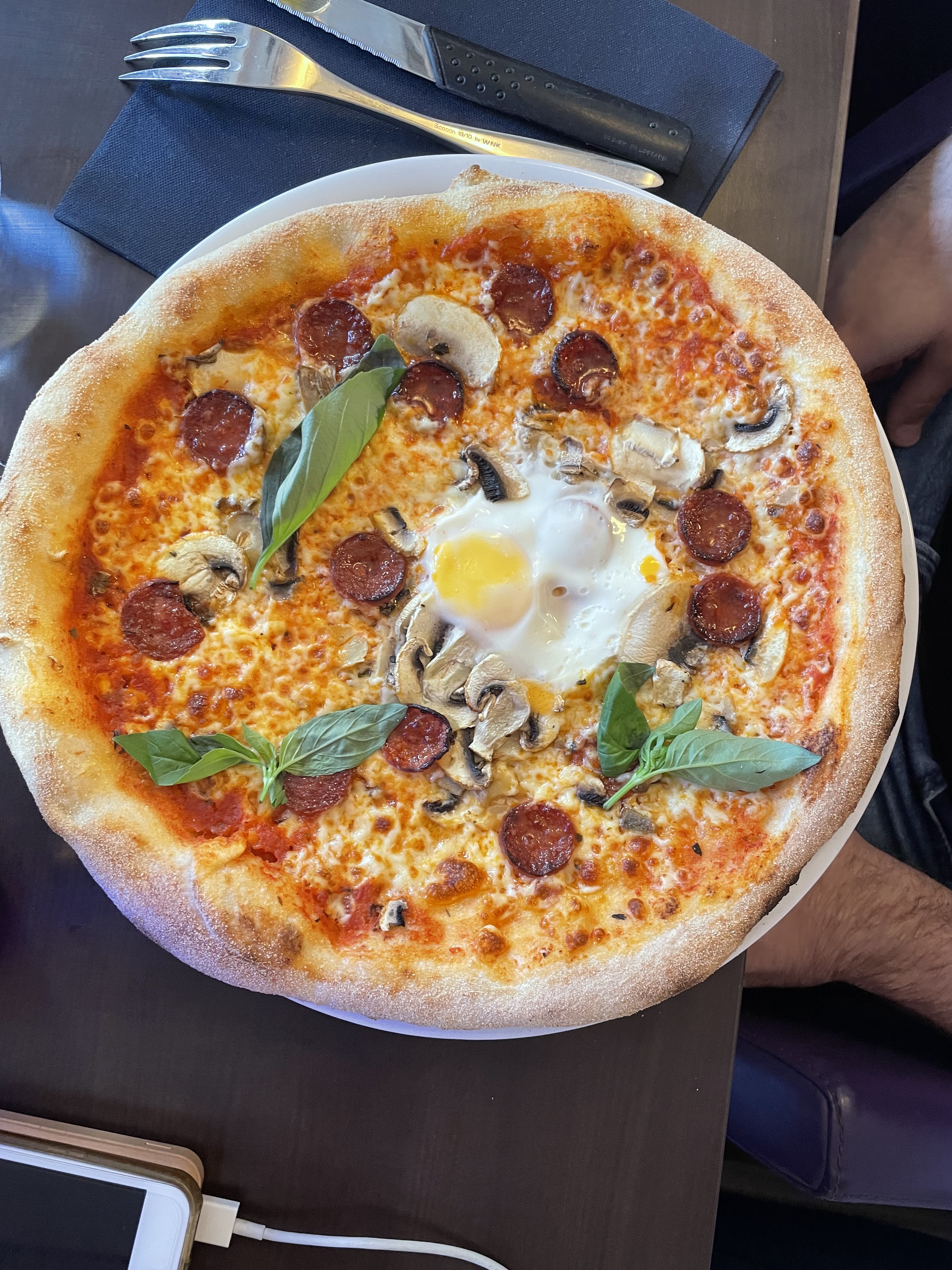 Je mets 3 étoiles car peu mieux faire… malgré le gros potentiel de l’établissement. Patron exécrable, rien de jovial, et pas du tout souriant. Mais la serveuse Carol Helen plus que professionnelle, nous donne de très bons conseils en matière de vins avec choix, elle a été très attentionnée avec nous. Et elle a été très sympathique avec notre table de 11 personnes … ça change de son collègue qui nous a pas lâché un seul sourire. Quand à la cuisine, peu mieux faire, les assiettes n’étaient pas très propres. Les pizzas étaient minuscules par rapport au prix. Dommage car c’est un joli endroit pour déjeuner entre collègues. À retravailler!!!