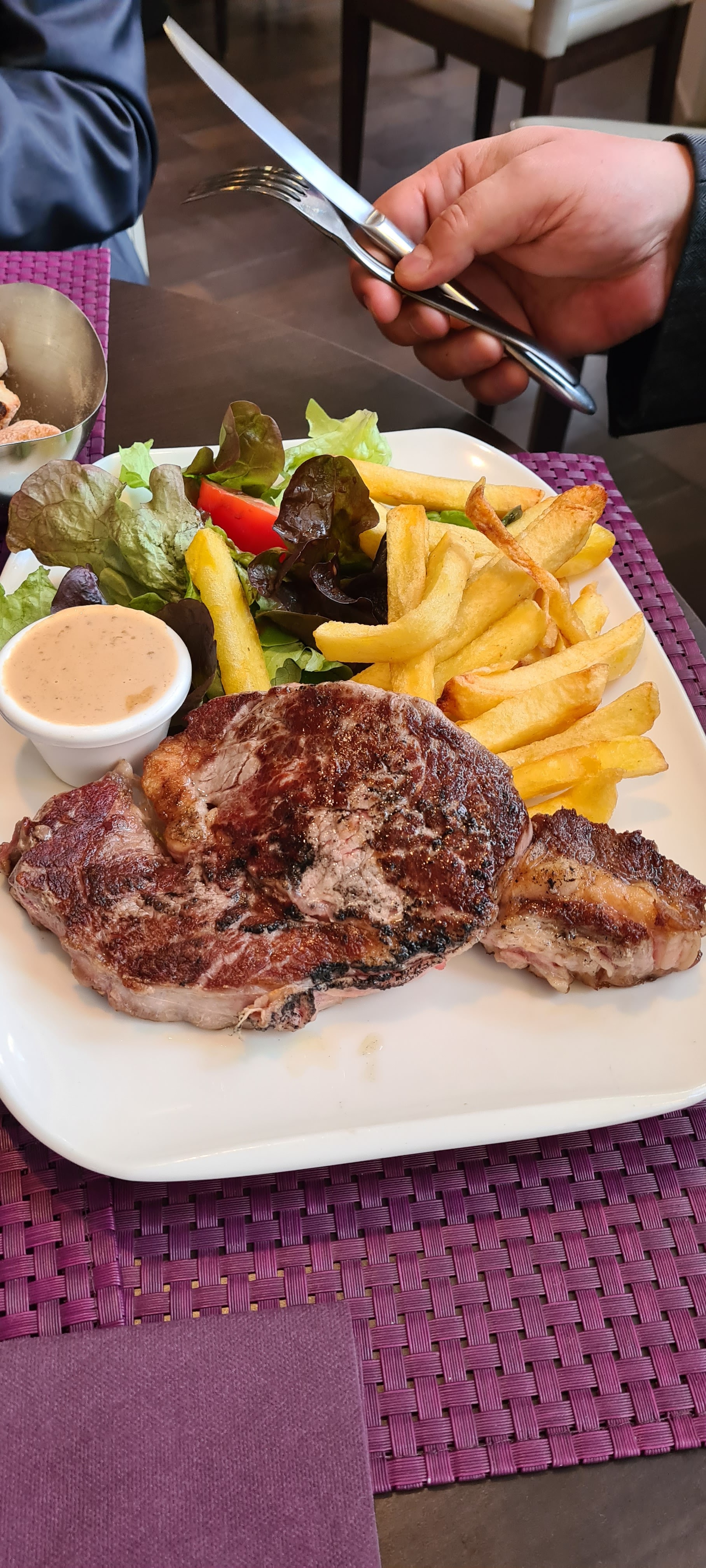 Y aller avant d'avoir faim, parce l'attente est très longue. 1 heure d'attente pour une entrecôte... Moyen Surprise du chef dans l'entrecôte