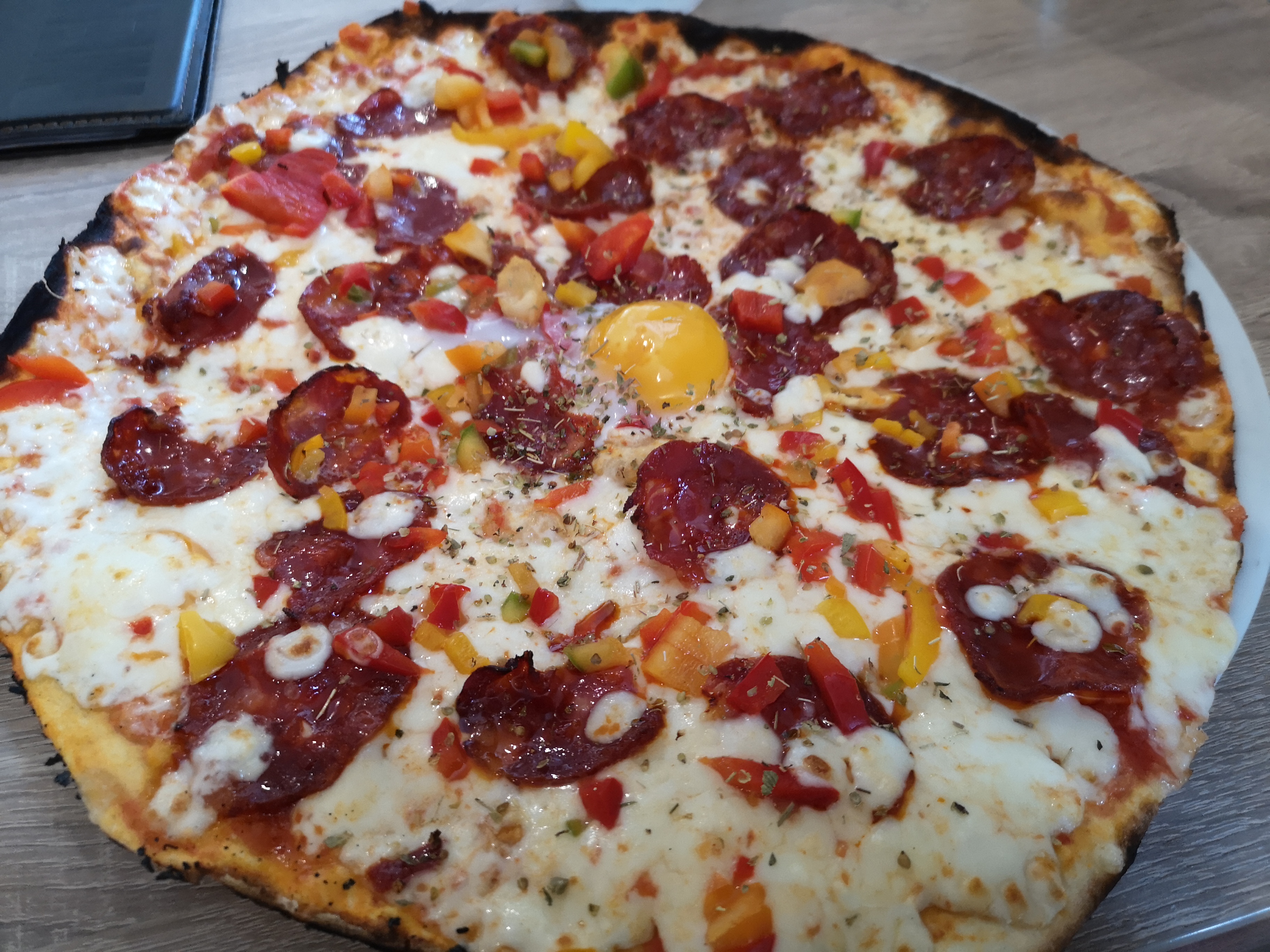 Pizza délicieuse, pâte fine, bien garnie. Je reviendrai