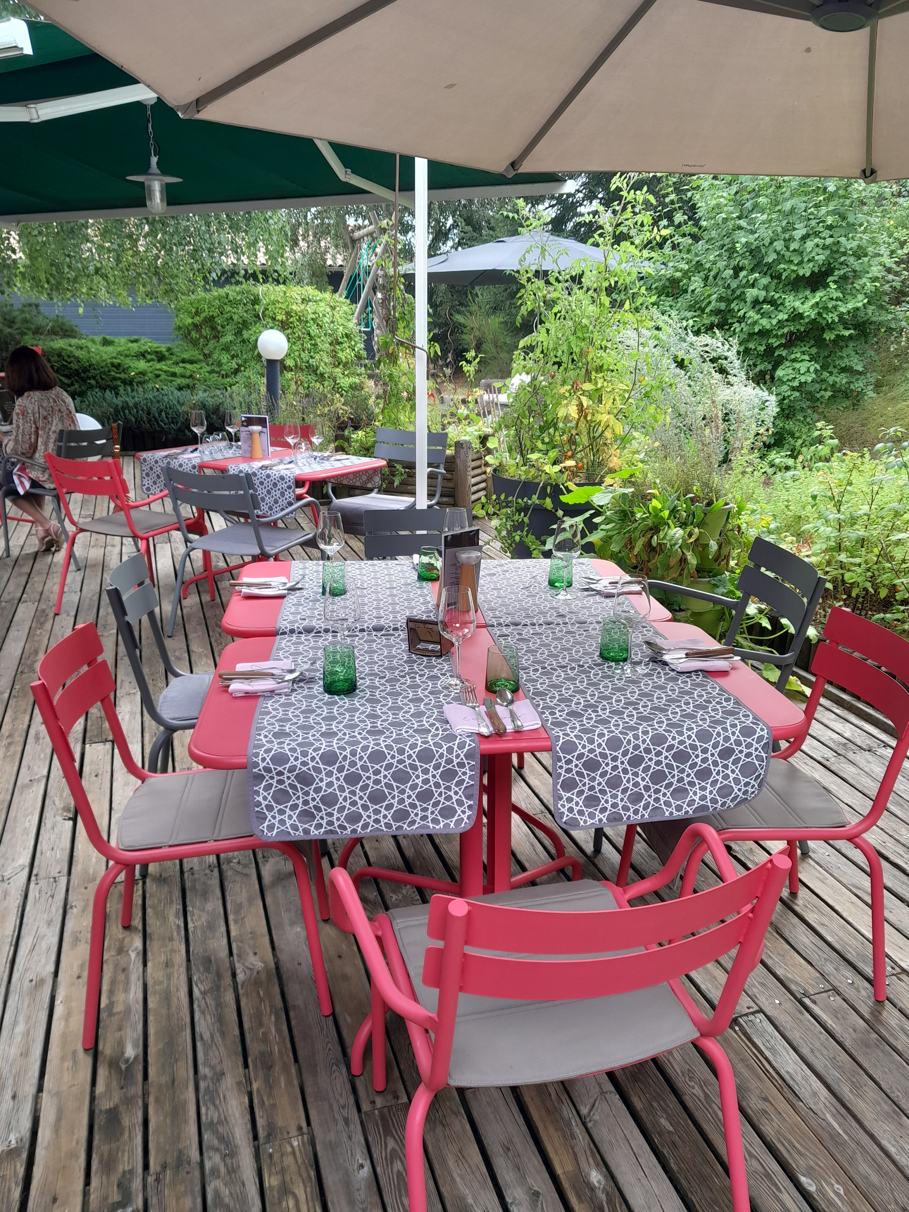 La terrasse du restaurant est très agréable. Les plats sont très bons mais le service est légèrement long. Pratiquement 2h pour être servi de tous les plats commandés. Heureusement, des plats d'attentes sont servis. Une entrée d'attente est servi avant votre entrée et un dessert d'attente est servi avant le dessert, ces 2 plats intermédiaires étaient très bon également. Il y a un petit parking devant l'hôtel restaurant pour s'y garer. PS : Pensez à réserver votre table le midi si vous voulez y manger, le restaurant est rapidement complet les jours de beau temps.