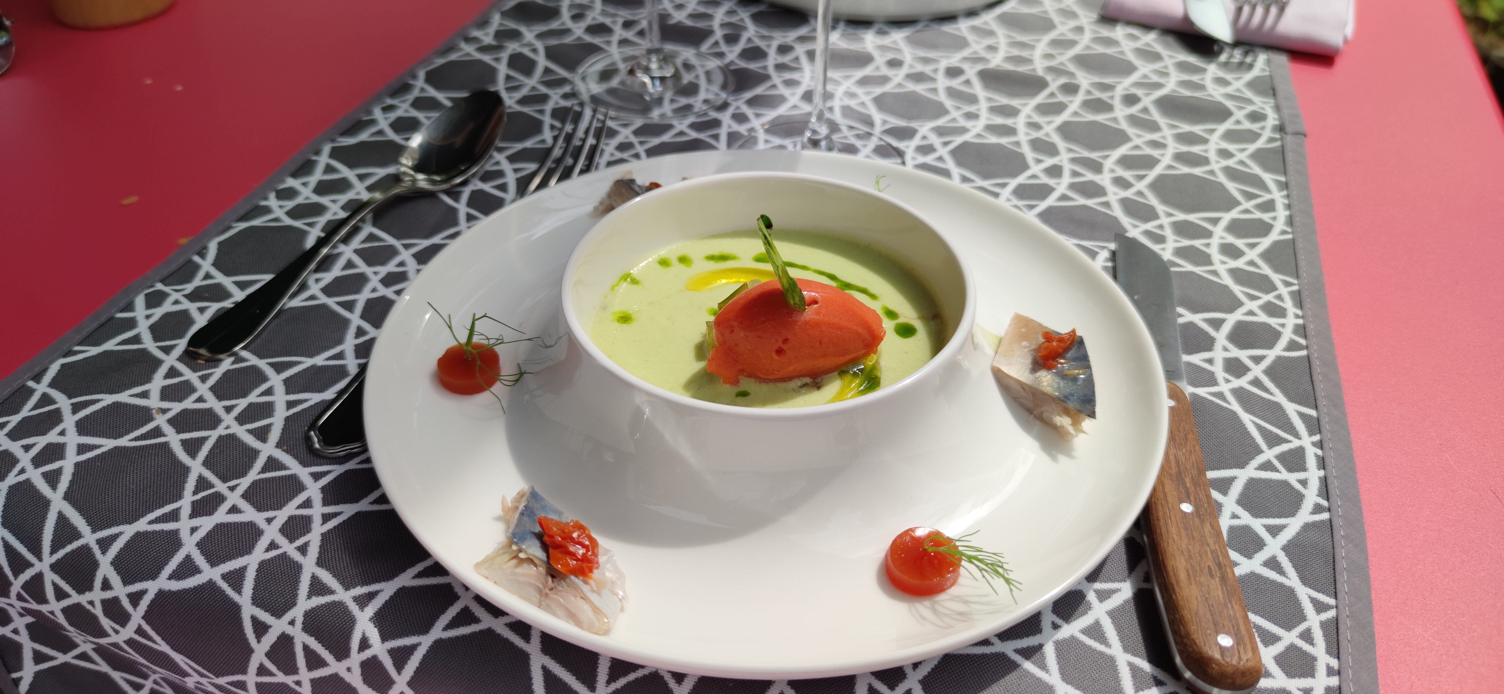 Agréable terrasse, service très aimable et souriant. Je ne garderai un souvenir impérissable d'aucun plat sinon de l'interlude de guimauve à la verveine. Un peu trop de ressorts dans la literie pour nos dos sensibles au point que nous en avons retiré le sommier. Buffet de petit-déjeuner varié et de qualité. Souci du terroir et des produits permanent, sans être la table de bistronolie que promettait le menu.