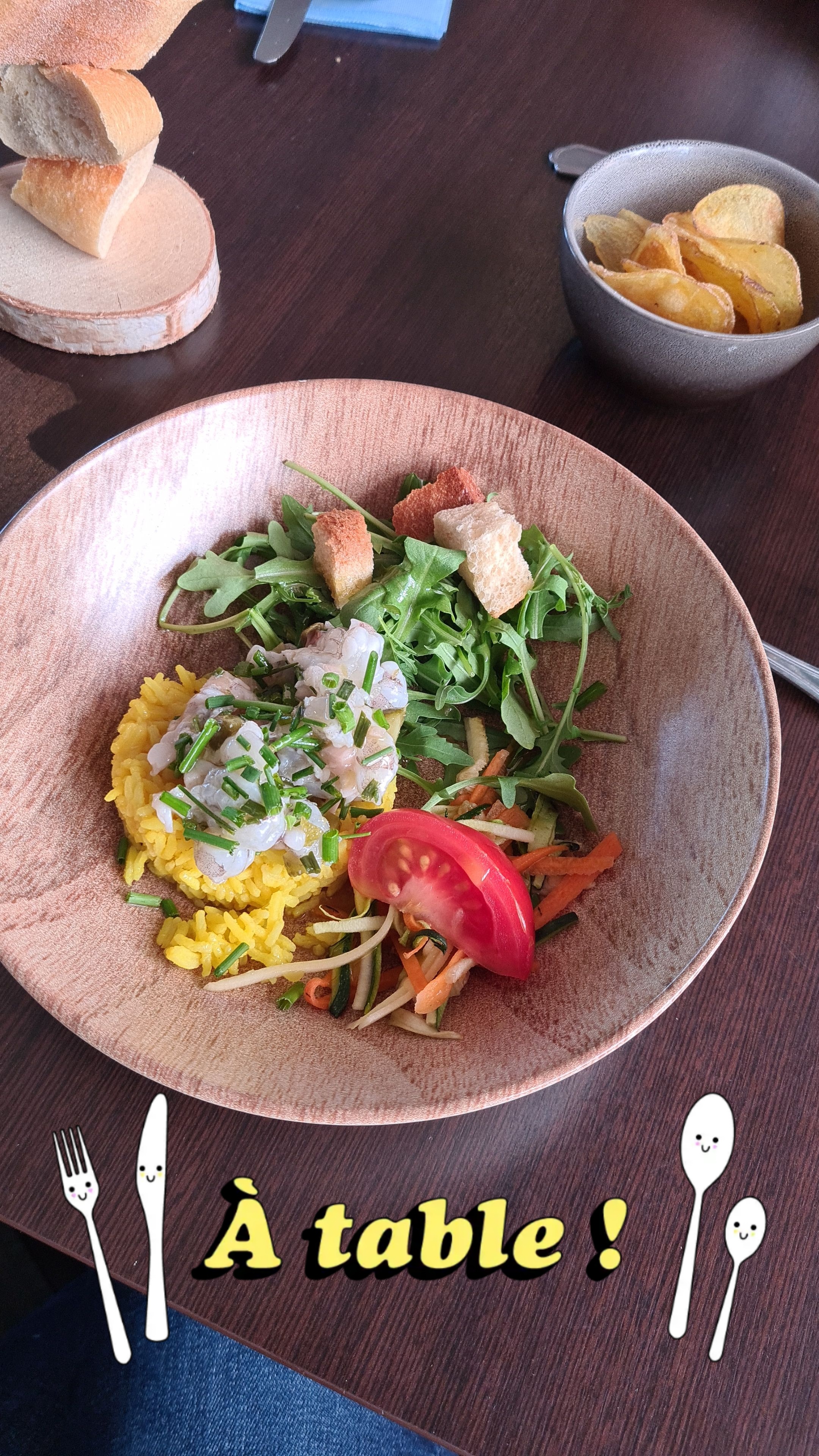 Chips maison à tomber par terre à l'apéro ! Bons plats. Serveur agréable et service très rapide.
