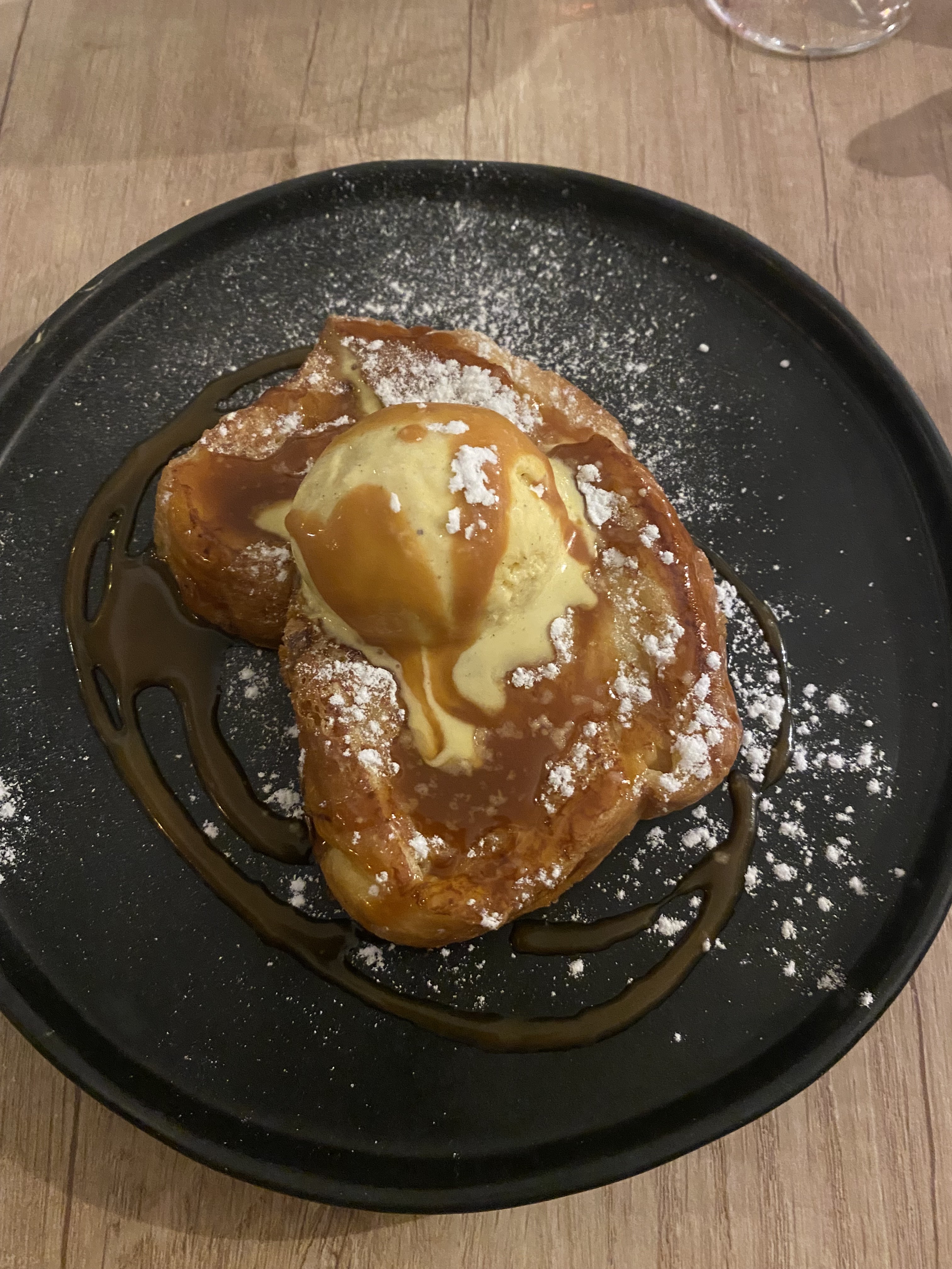 Accueil sympathique ! Les plats sont savoureux , bien présentés et arrivent chauds ! La brioche perdue au caramel avec sa boule de glace vanille un délice ! Le parking 🅿️ est vite plein ! Il y a des rues à proximité pour se garer ! Accessible en fauteuil roulant ♿️ ! Je recommande cet établissement !