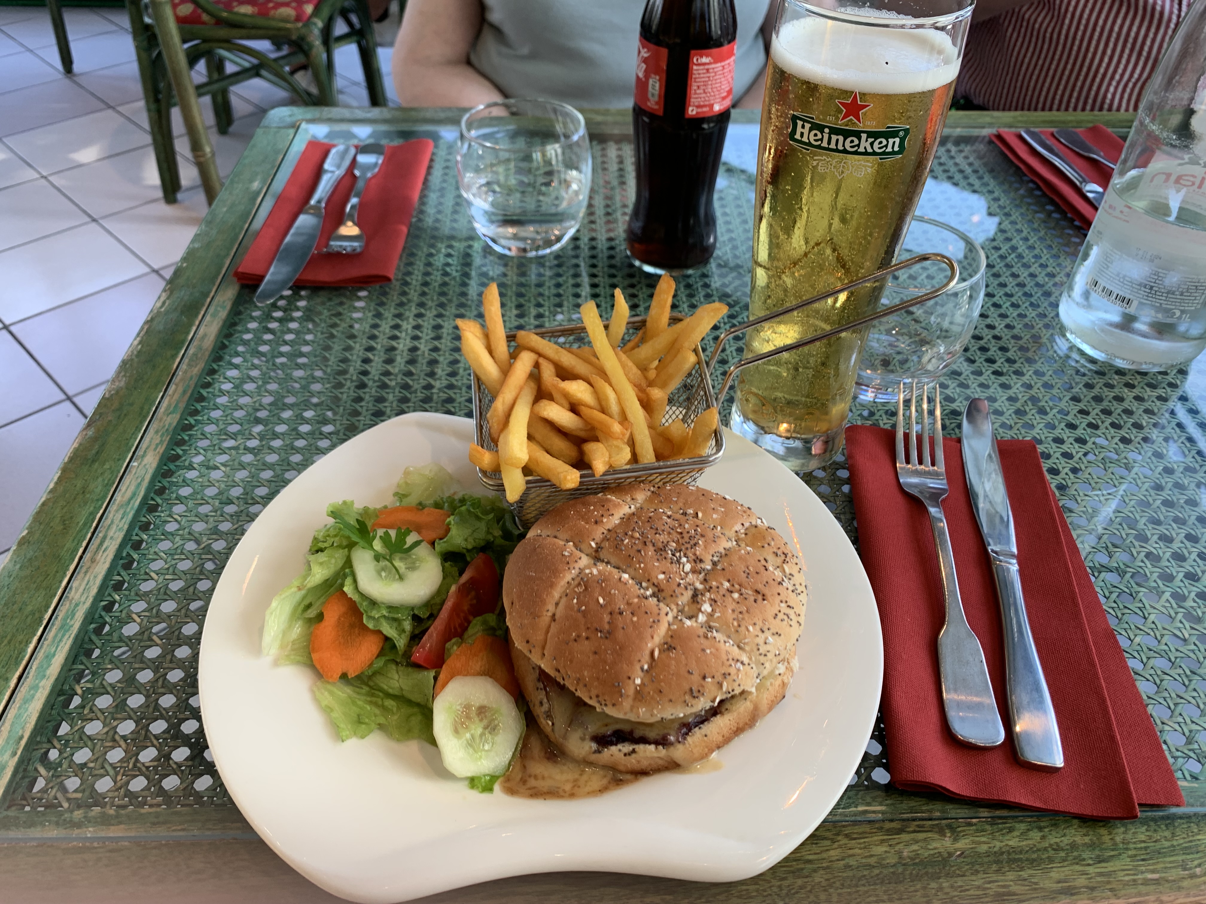 La nourriture était correcte. Il n'y avait pas d'autre moyen d'obtenir de l'eau (d'ailleurs courant en France..) Le service a été une catastrophe ce jour-là. Nous n'avons été servis qu'après avoir reconnu le personnel en agitant et en faisant des signaux clairs. à l'exception d'une dame qui était un peu plus sympathique et plus gentille, un échec complet. J'espère que nous avons juste passé une mauvaise journée...