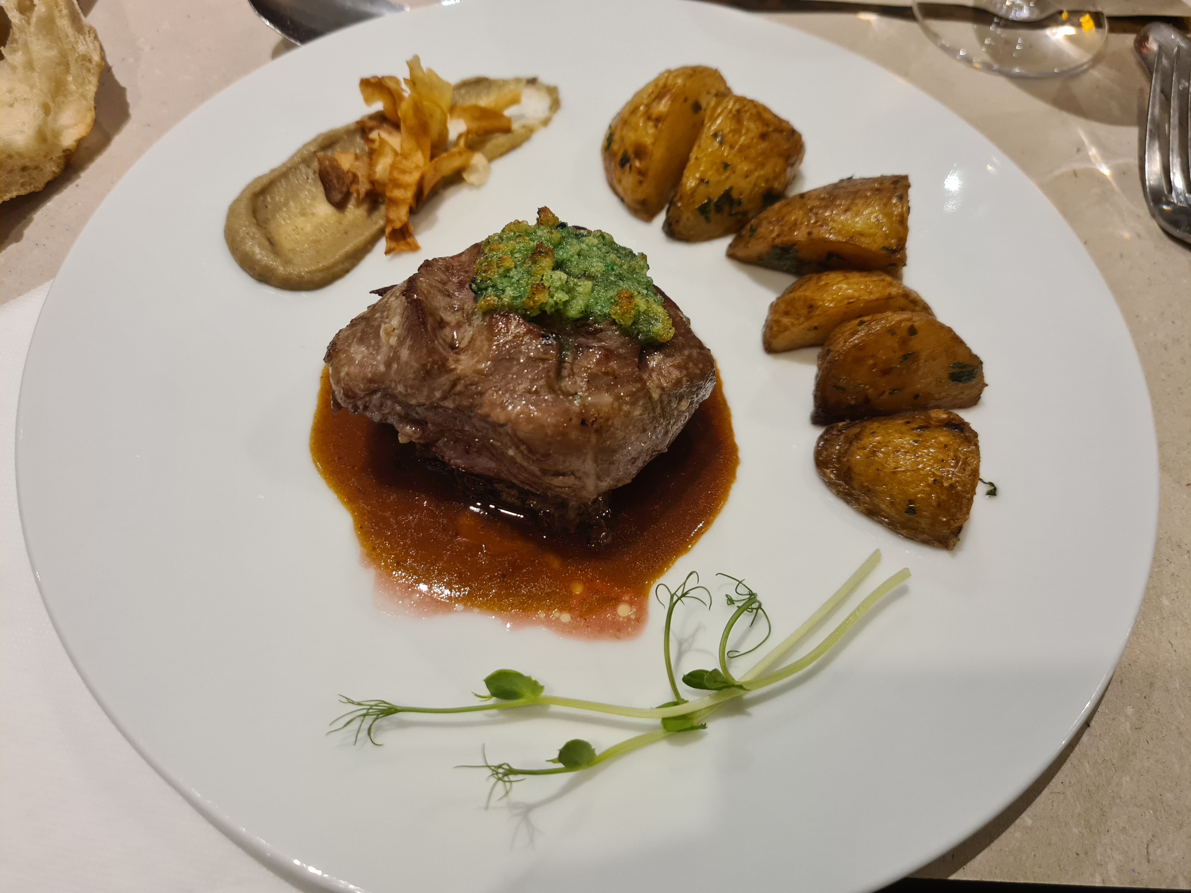 Joliment présenté mais inégal, plat un peu limité , dessert très généreux