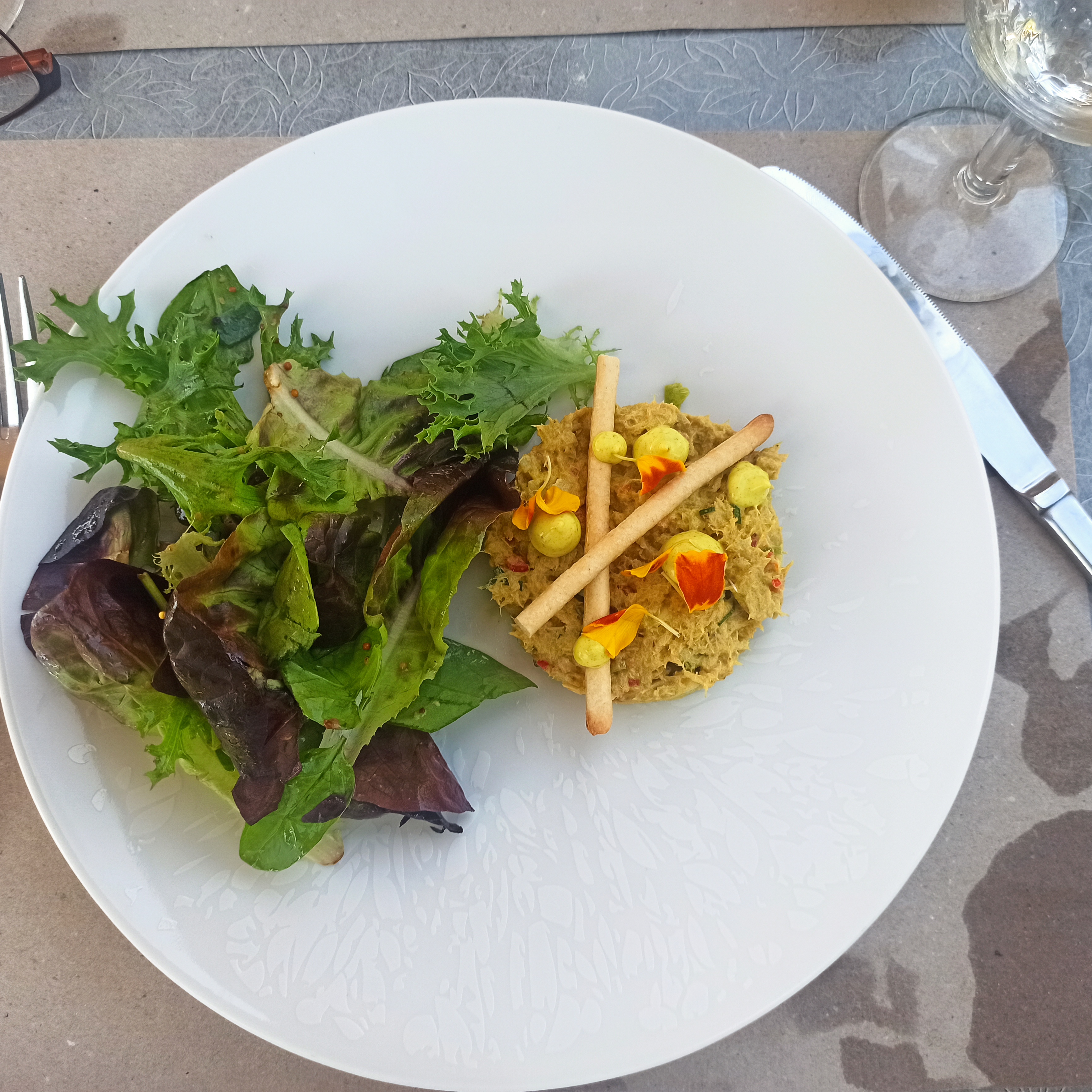 Un cadre magnifique. Un lieu joliment décoré. Une terrasse ou il fait bon s attarder . Une cuisine savoureuse, colorée, qui ravit les yeux et les papilles. Un très bon moment. A renouveler ! Merci.