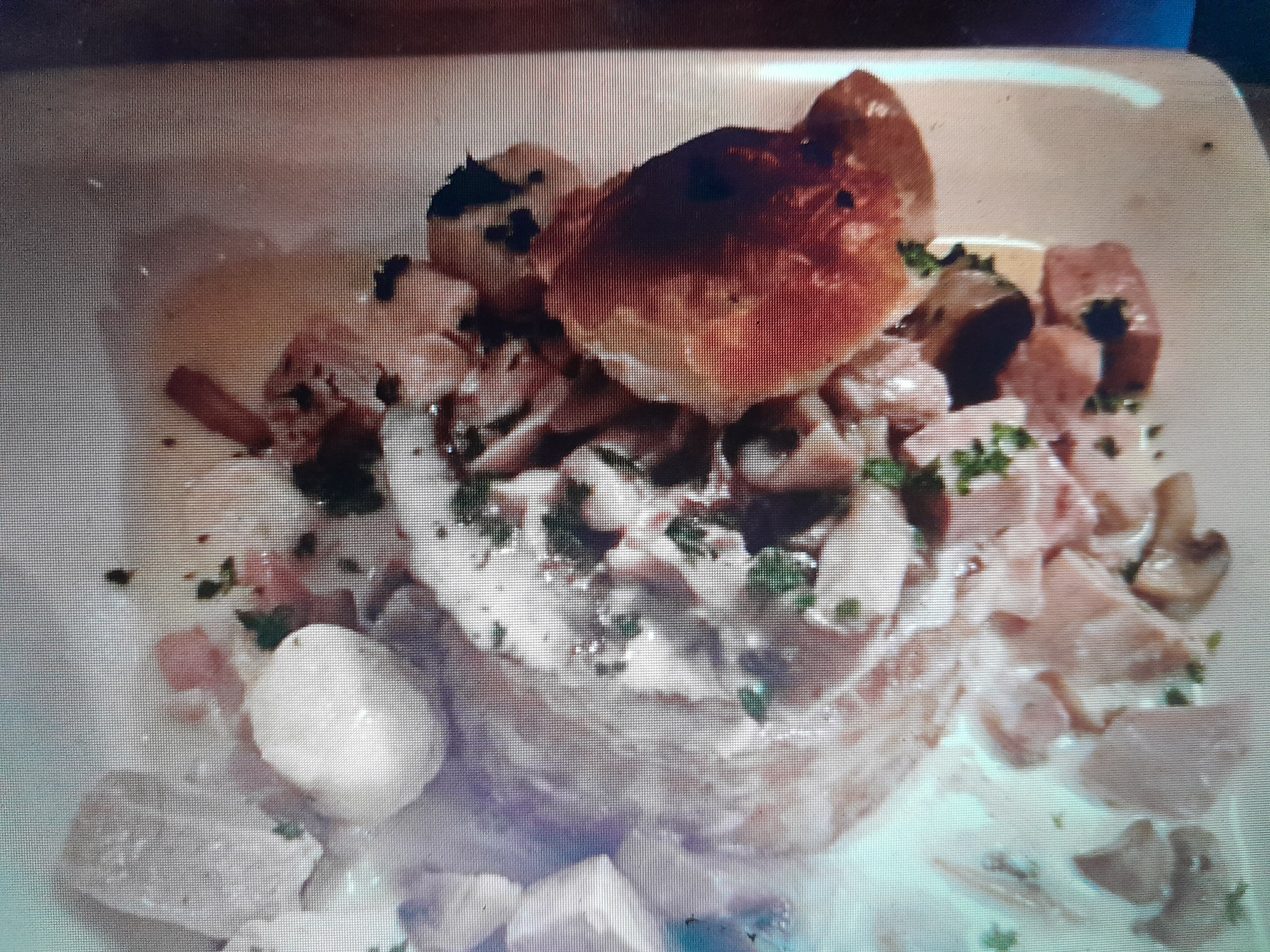 Mille feuilles de melon jambon ( en plat très frais) le dessert baba au rhum bele présentation mais le baba par lui même pas assez mouillé donc pas mangeable à mon goût. Bon service