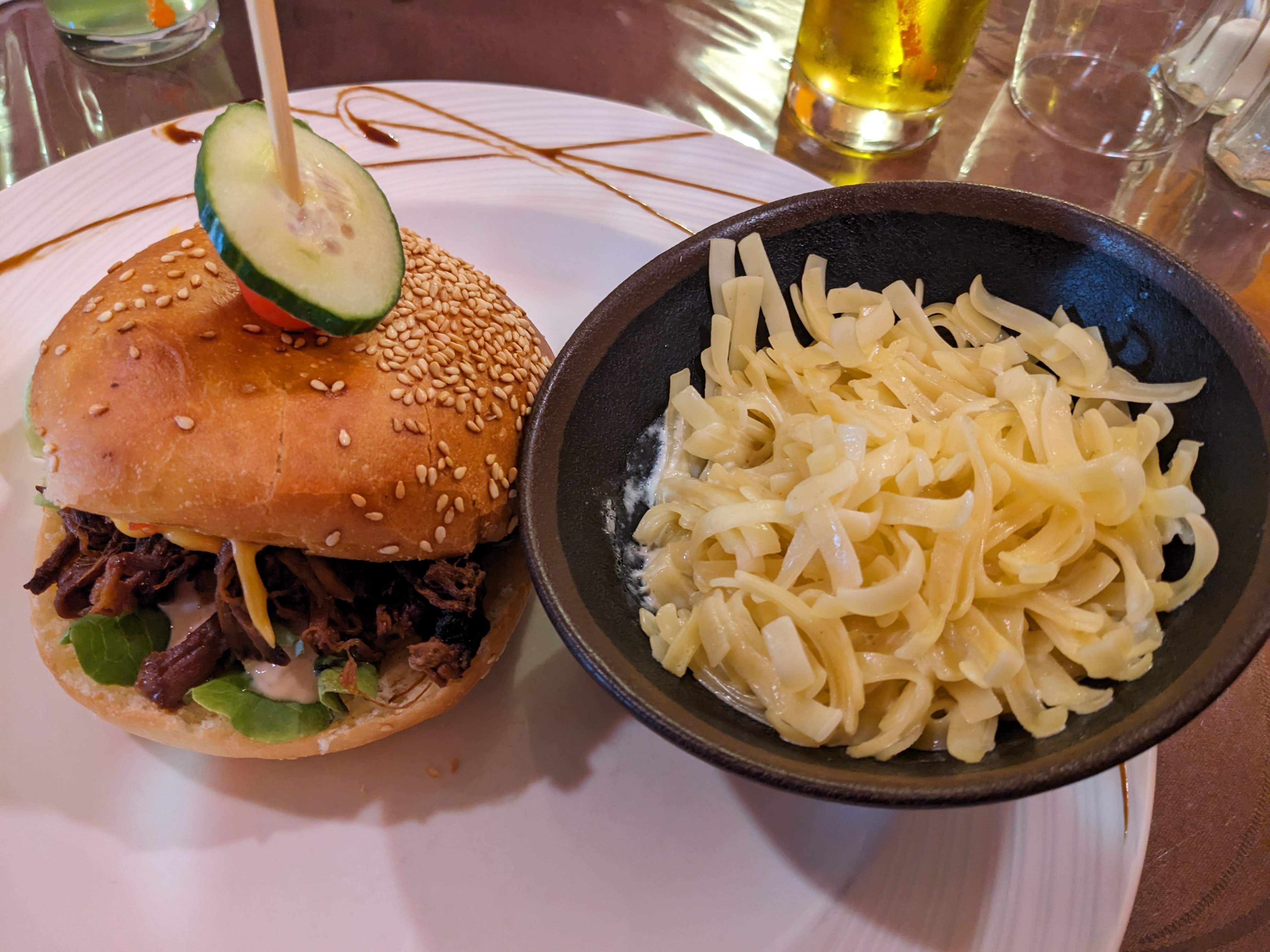 Bonne cuisine, budget cohérent Service correct, sans plus. Une erreur de service et un peu d'attente (pas aberrant non plus). Salle bruyante dans le fond. La fille de la patronne fait le tour des tables pendant le repas. Même si elle est gentille, ça peut être gênant quand c'est récurrent . 16€50 pour un burger. Il était assez bon. Frites a priori industrielles.