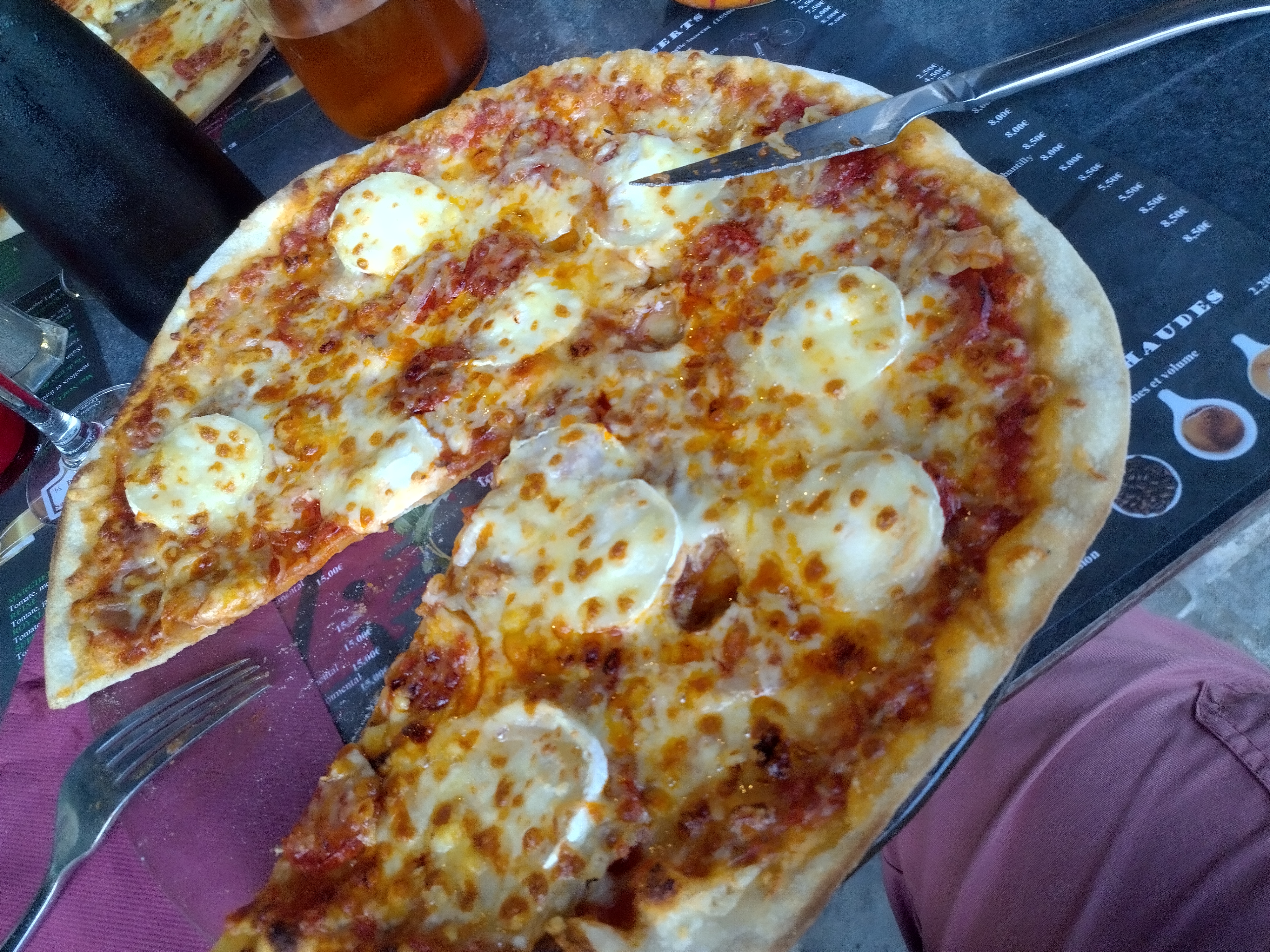 Pizzas très correctes Rapport qualité prix bon pour cette ville très touristique Service gentil Salle un peu bruyante par contre