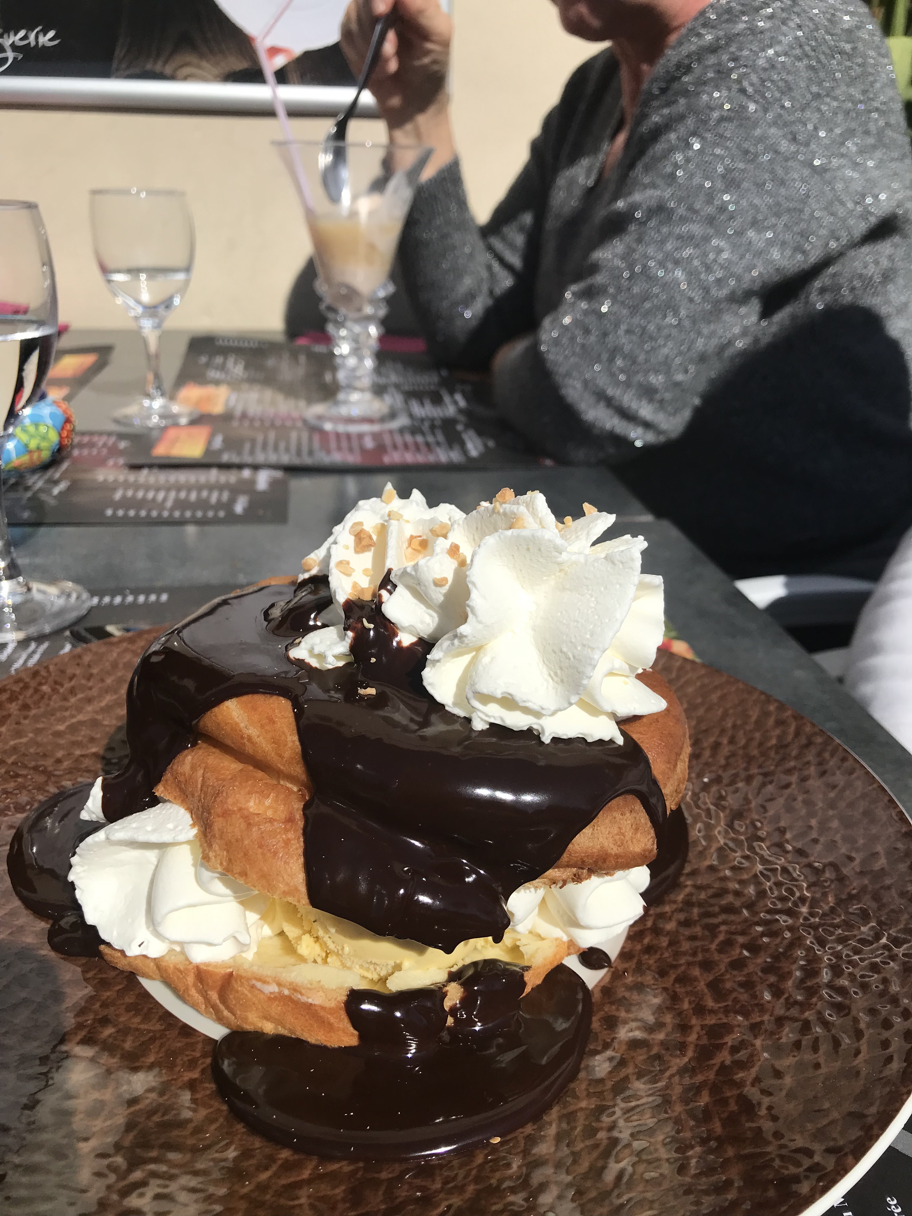 Repas en terrasse , plat du jour excellent , dessert big format pour les profiteroles . La serveuse gère sa terrasse au top avec gentillesse et efficacité. Les toilettes hyper propres Rien à redire il faut y aller sans hésiter