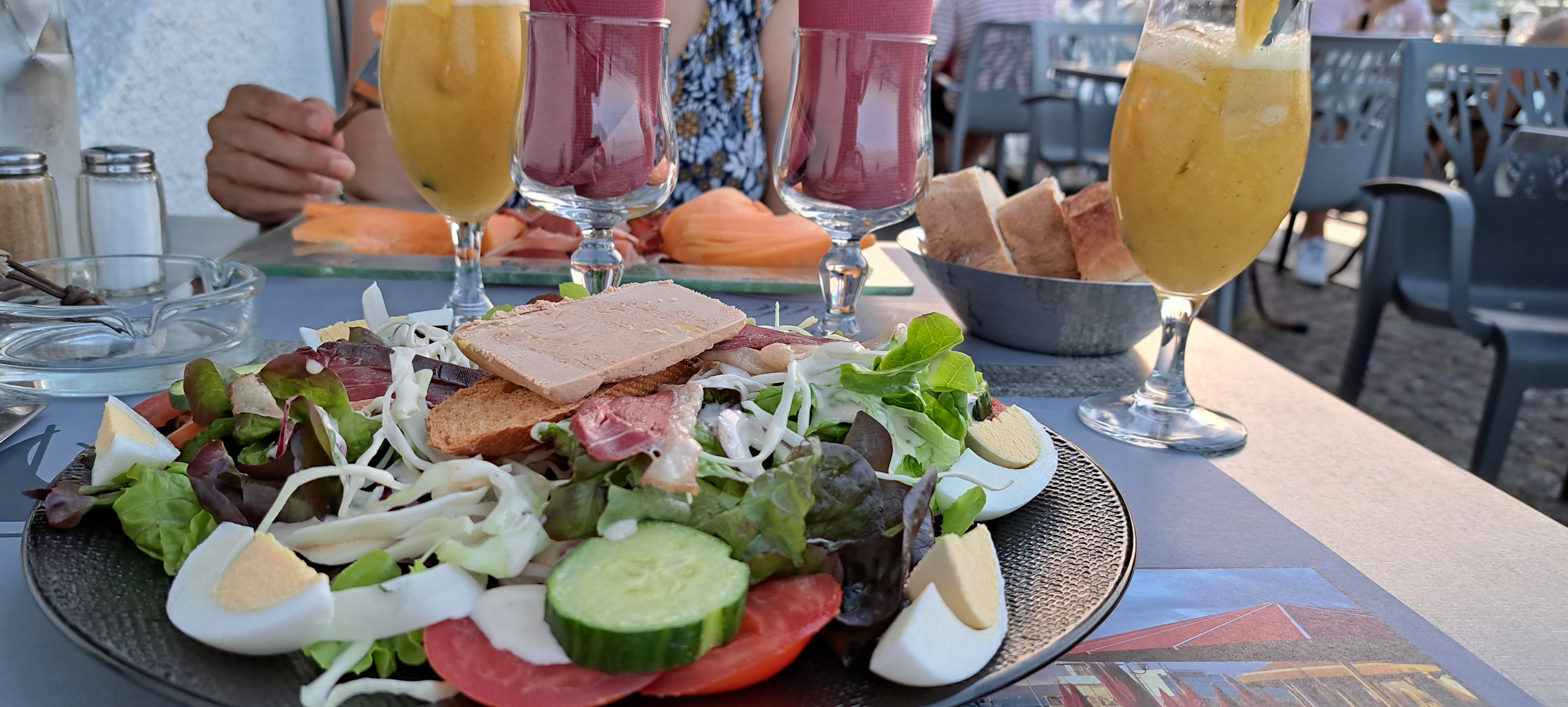 Pour un restaurant qui affiche son plaisir de la cuisine sur le menu j'ai été très déçu du résultat. Une salade gourmande insipide composée de mousse de foie gras et baignant dans une sauce industrielle, le tout accompagné de frites surgelées trop salées. Je déconseille, la vue est certes belle mais elle coûte moins cher depuis le chemin longeant la côte.