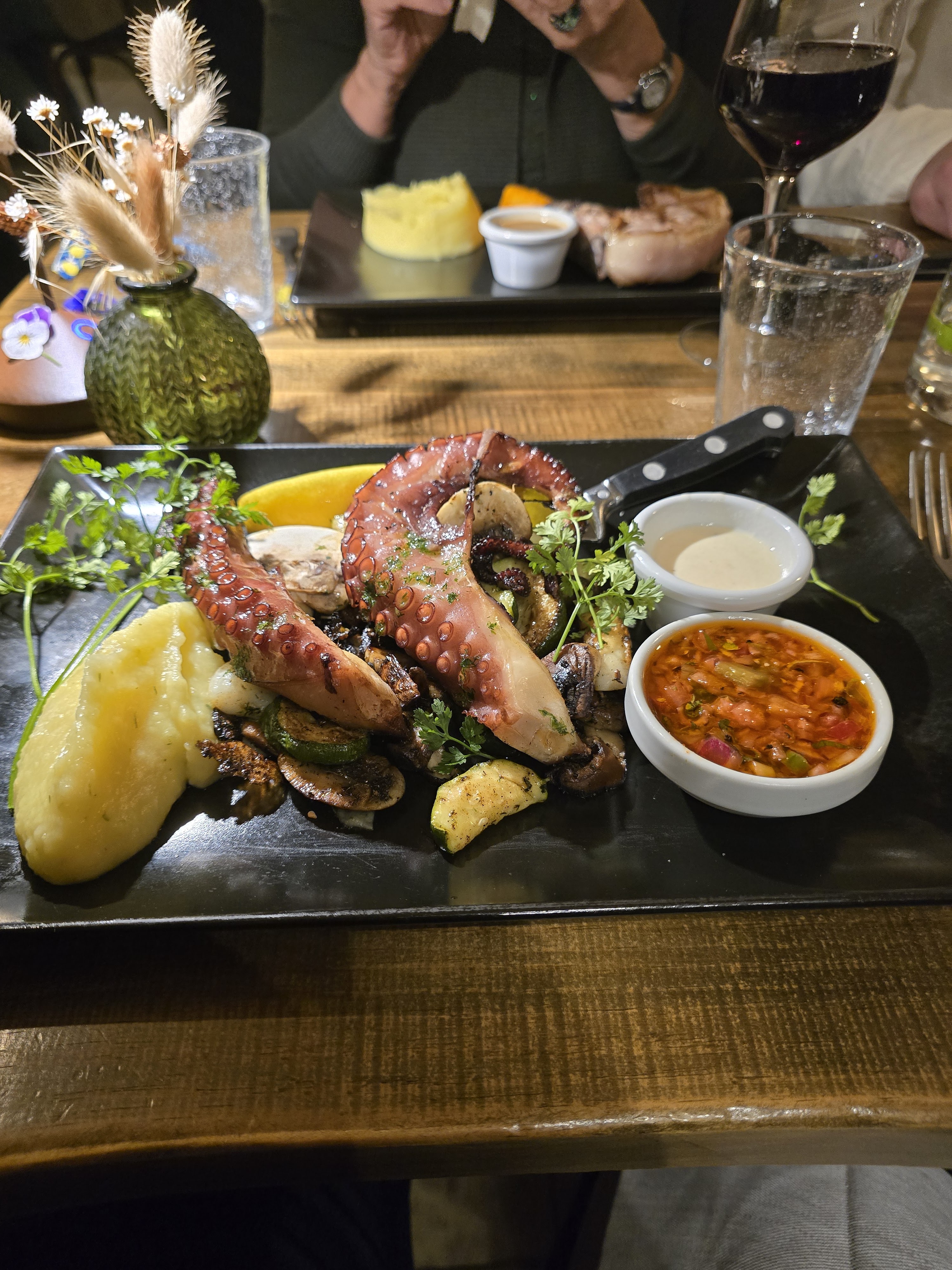 Une expérience culinaire excellente, dans une ambiance chaleureuse où l’on voit la cuisson des viandes à la braise… Je ne peux que recommander cet établissement !!