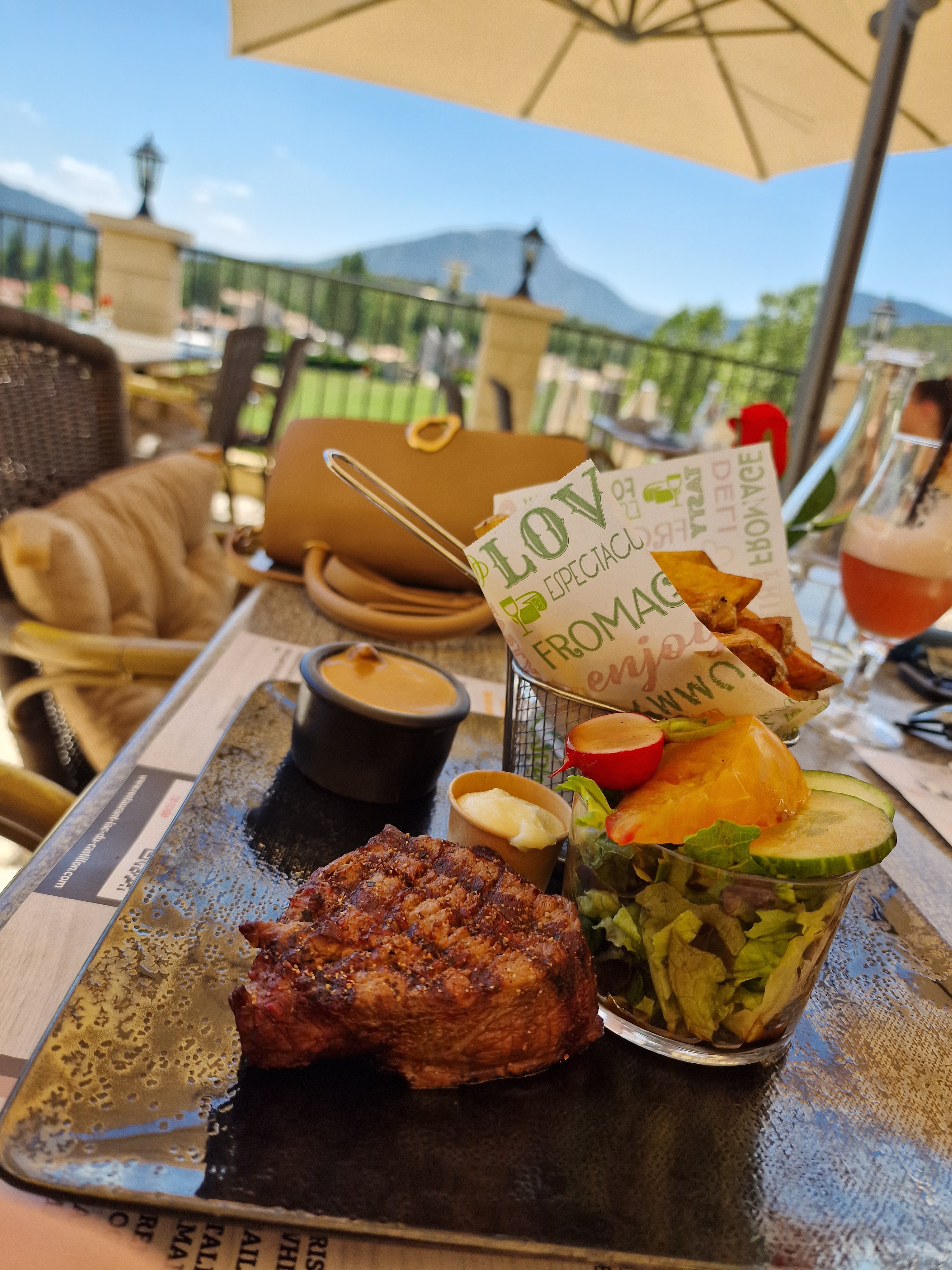 Endroit charmant en hauteur dans les montagnes avec vue à seulement quelques minutes de la ville. C'était le meilleur repas que nous ayons eu à Castellane. Le service était merveilleux !