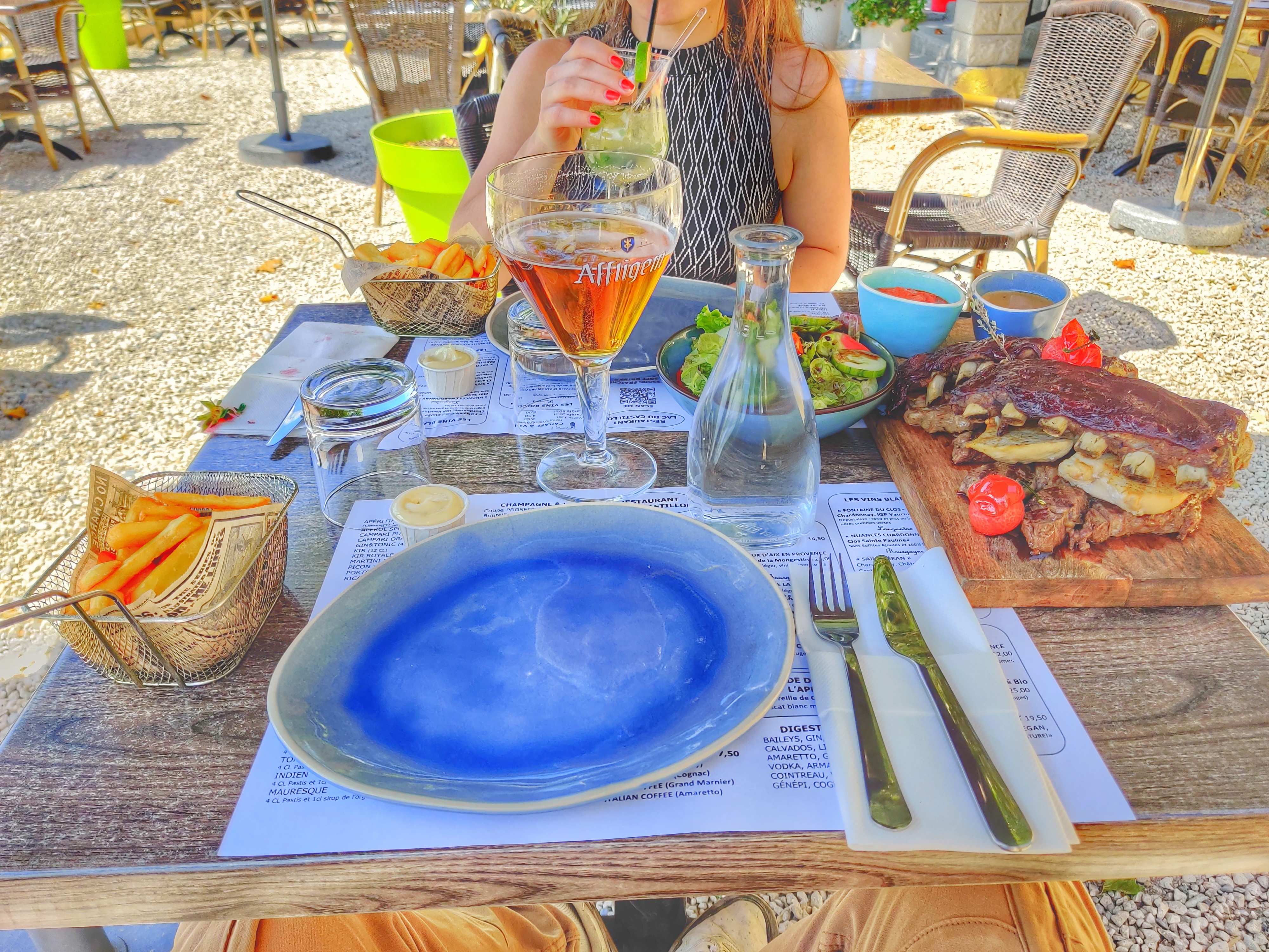 Le restaurant privilégie d'un joli cadre avec une belle vue depuis la terrasse. Le personnel est agréable et accueillant et la cuisine de bon goût. Deux petits bémols tout de même. Rien de grave dans un premier temps : une pina colada servie en guise de mojito pour l'apéro. Par contre, à l'image de l'ensemble des restaurants dans le parc régional du Verdon il semblerait, une énorme contamination au gluten sur des plats ne devant pas en contenir, rendant immédiatement malade les personnes atteintes de maladie coeliaque, bien que le serveur ce soit donné la peine de se renseigner en cuisine. Une déception sur ce point malgré la gentillesse et le bon accueil du personnel