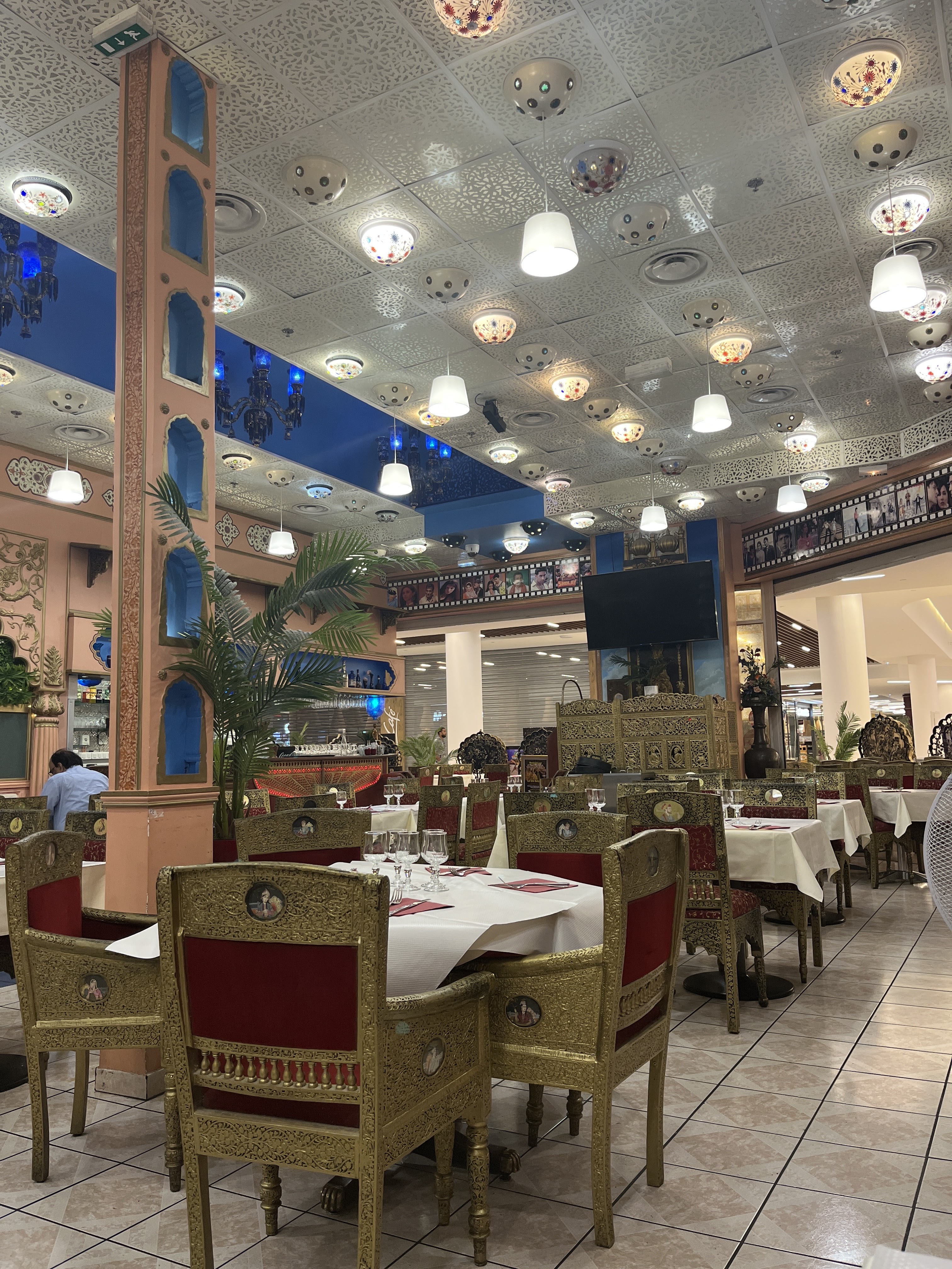 Décor grandiose, une pause indienne très efficace puisqu'on a vraiment l'impression d'être ailleurs pendant ce repas. Les plats sont délicieux, le personnel agréable et réactif. Coin toilettes très propre et en adéquation avec la décoration du restaurant. Petit bémol, le restaurant est ouvert sur la galerie et nous avons assisté à une rixe entre jeunes pendant notre repas.