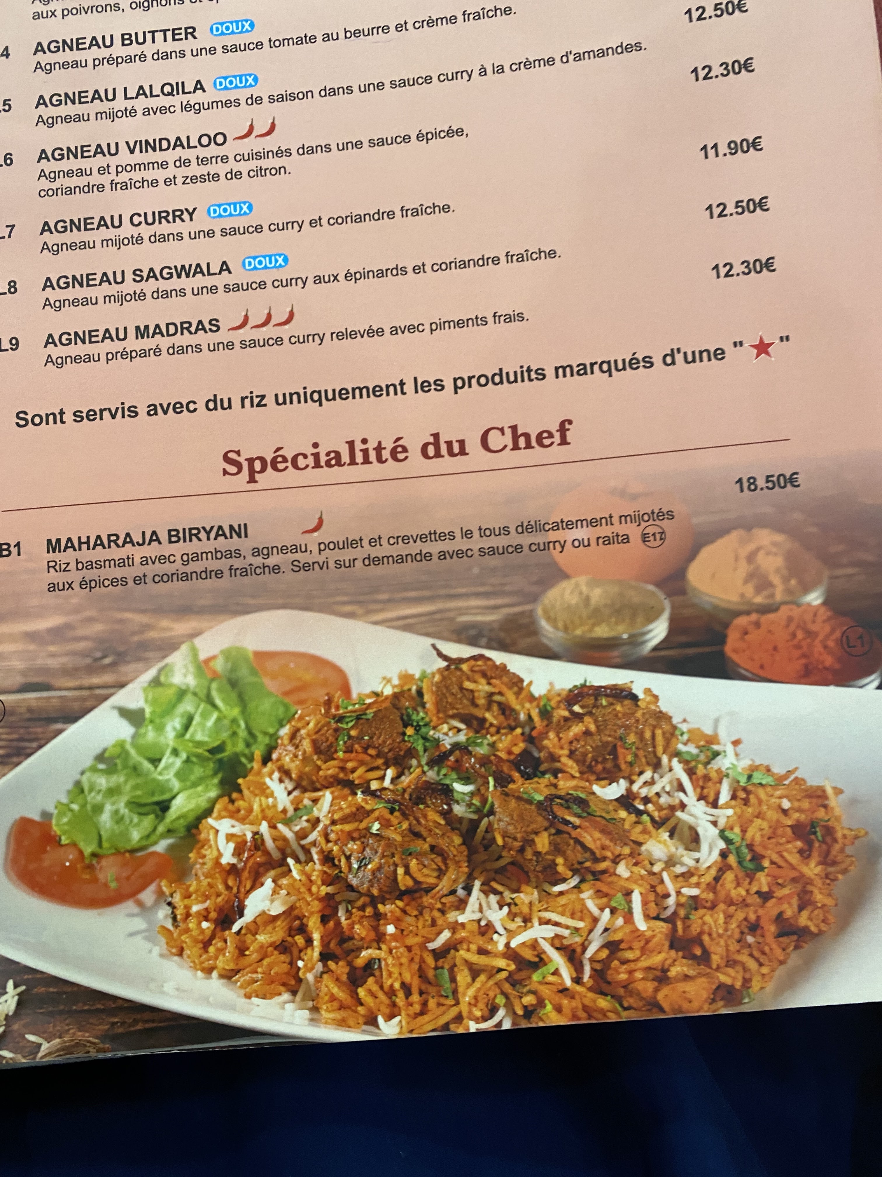 En ayant fait plusieurs restau indien , je trouve que celui ci manque de saveur et le riz ressemble beaucoup plus à du Uncle bens qu'à un riz basmati . Le poulet Vindaloo n'est pas terrible . La sauce ressemble à une purée . Je ne recommande pas