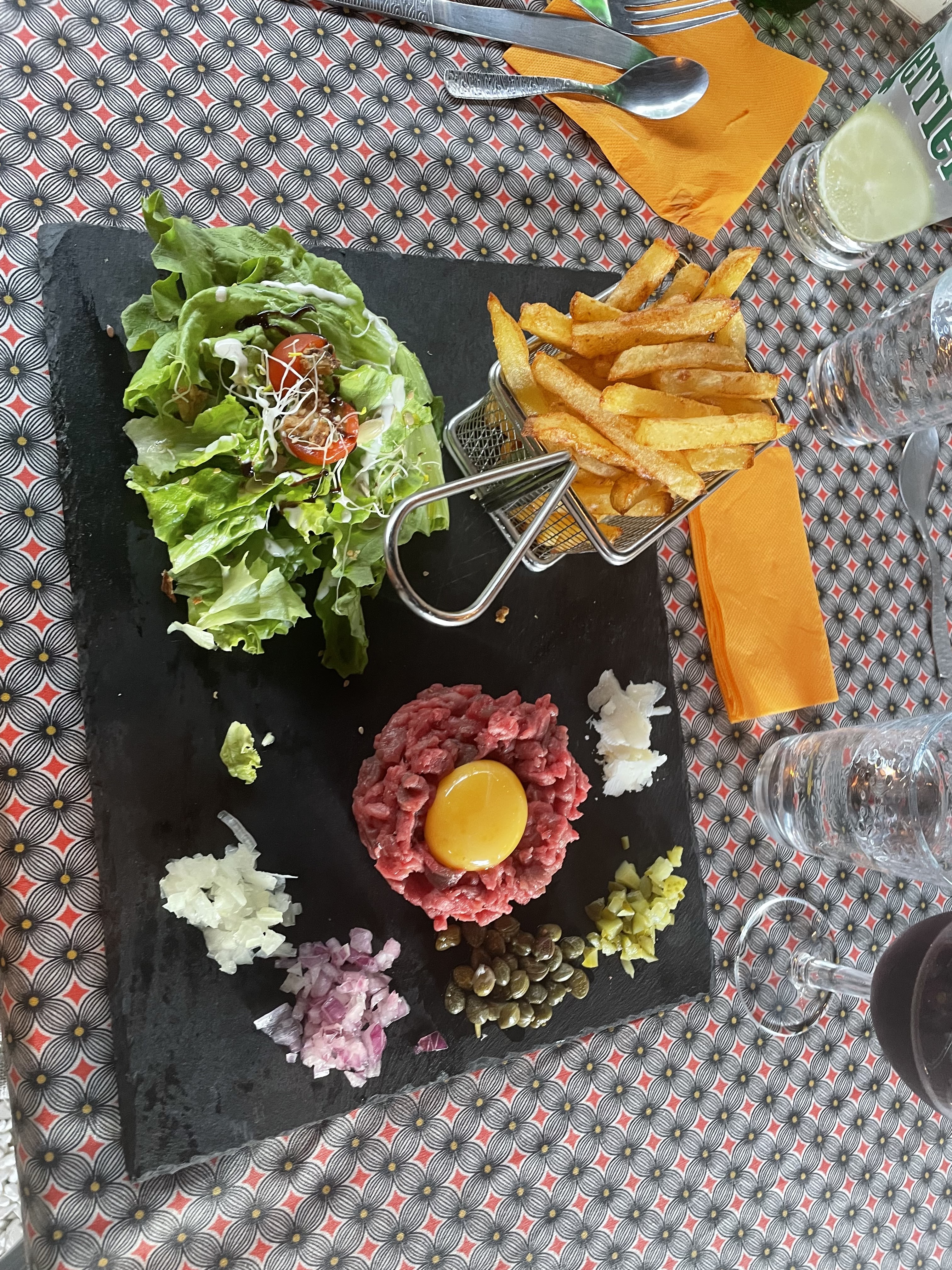 Nous avons logé dans le parc (d’ailleurs très bien), donc nous en avons profité pour manger au restaurant du Parc. Le service est super et la nourriture de très bonne qualité. Concernant la salade il y avait plus de salade que de garnitures, c’est dommage le ratio n’était pas très équilibré. Concernant le tartare, de la bonne viande, mais attention aux gros mangeurs car le steak est petit. Nous recommandons 😉