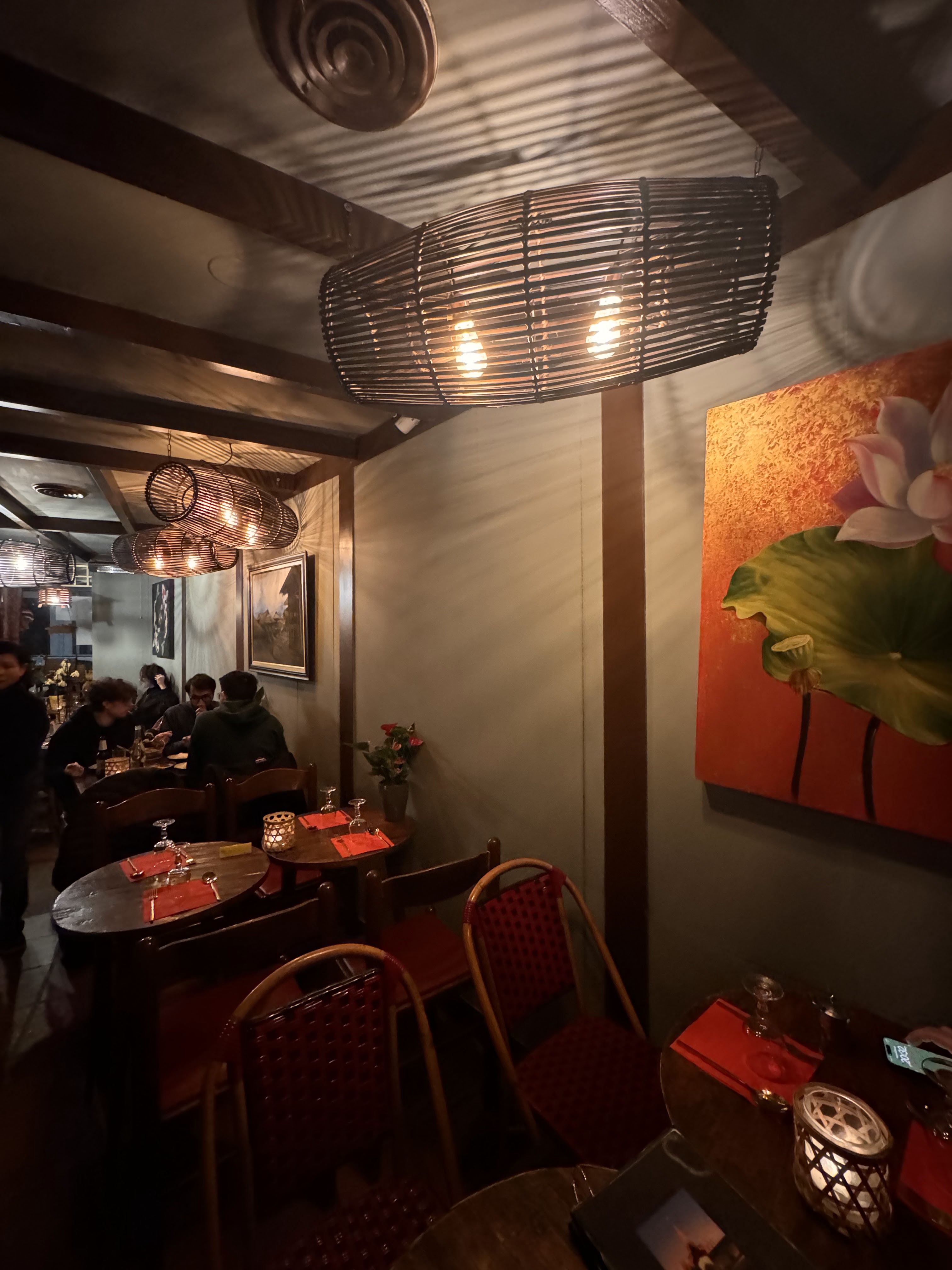 Restaurant sympa on y est passer un midi tres peu de monde les nems etait vraiment bon en ce qui concerne mon plat l’assiette etait bonne mais manque en quantité pour moi pour mon collegue il avait choisi un loc lac et lui ayant travailler dans un restaurant thai il a trouver que la viande manquait de saveur et que sa manquait d’un oeuf et graine de sésames autrement j’ai trouver le service un peu a l’arrache on nous a laisser les couvert avec serviettes complètement sur le cote ( voir photo ) sans prendre la peine de nous les mettres en face de plus il y a u un problème avec la machine a CB au final on a dut rester 1h40 pour un repas du midi obliger de trouver un guichet ect la dame a tout de meme offert le café globalement j’aurais mis 3 parceque j’ai connu bien mieux en deco service et nourriture mais je ne veut pas nuire a leur note