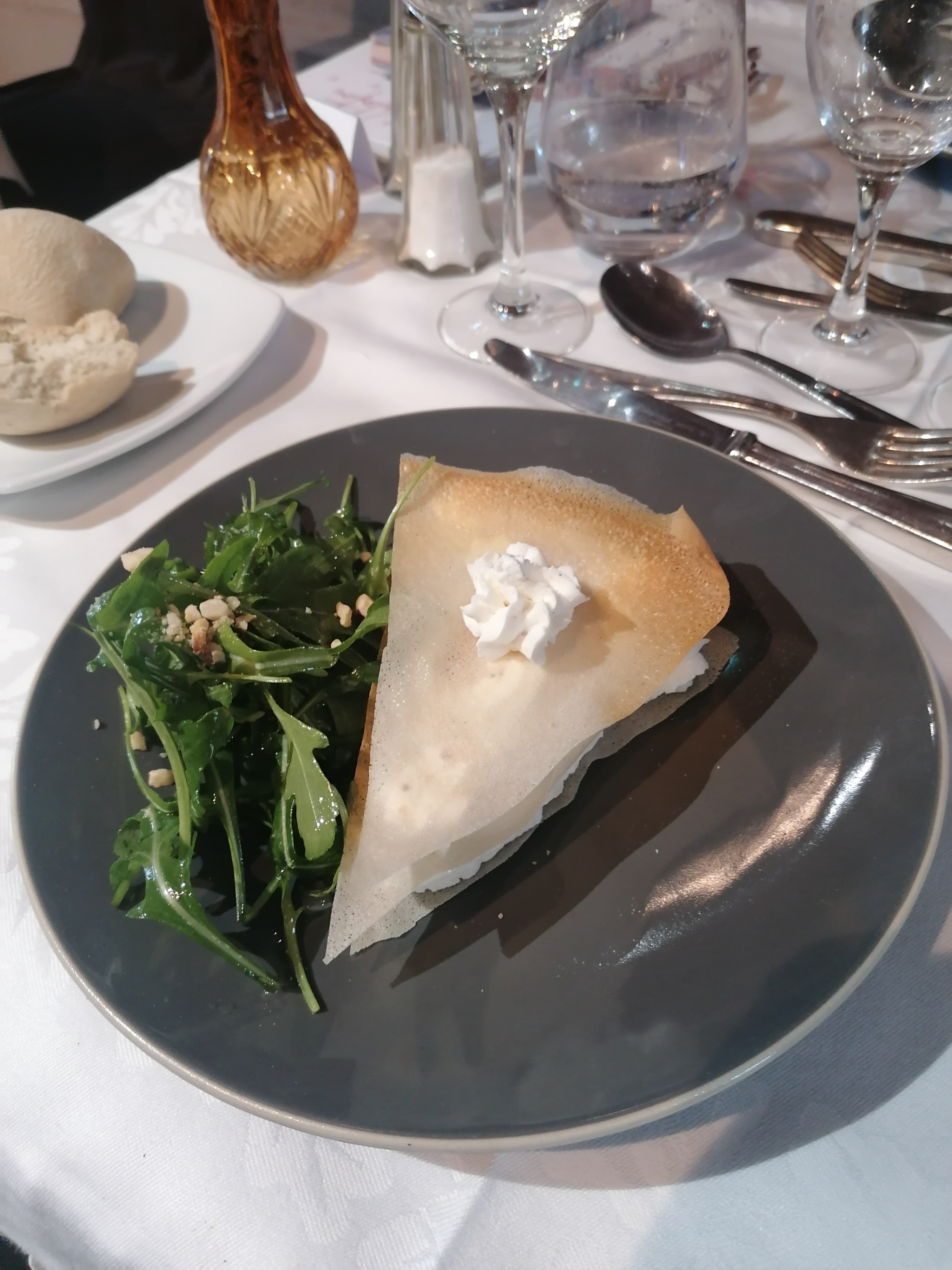 Un repas très agréable, dans un cadre charmant (vouté). Le personnel est au petit soin, et le volume de la pièce donne un coté intime a votre repas. Une halte à faire.