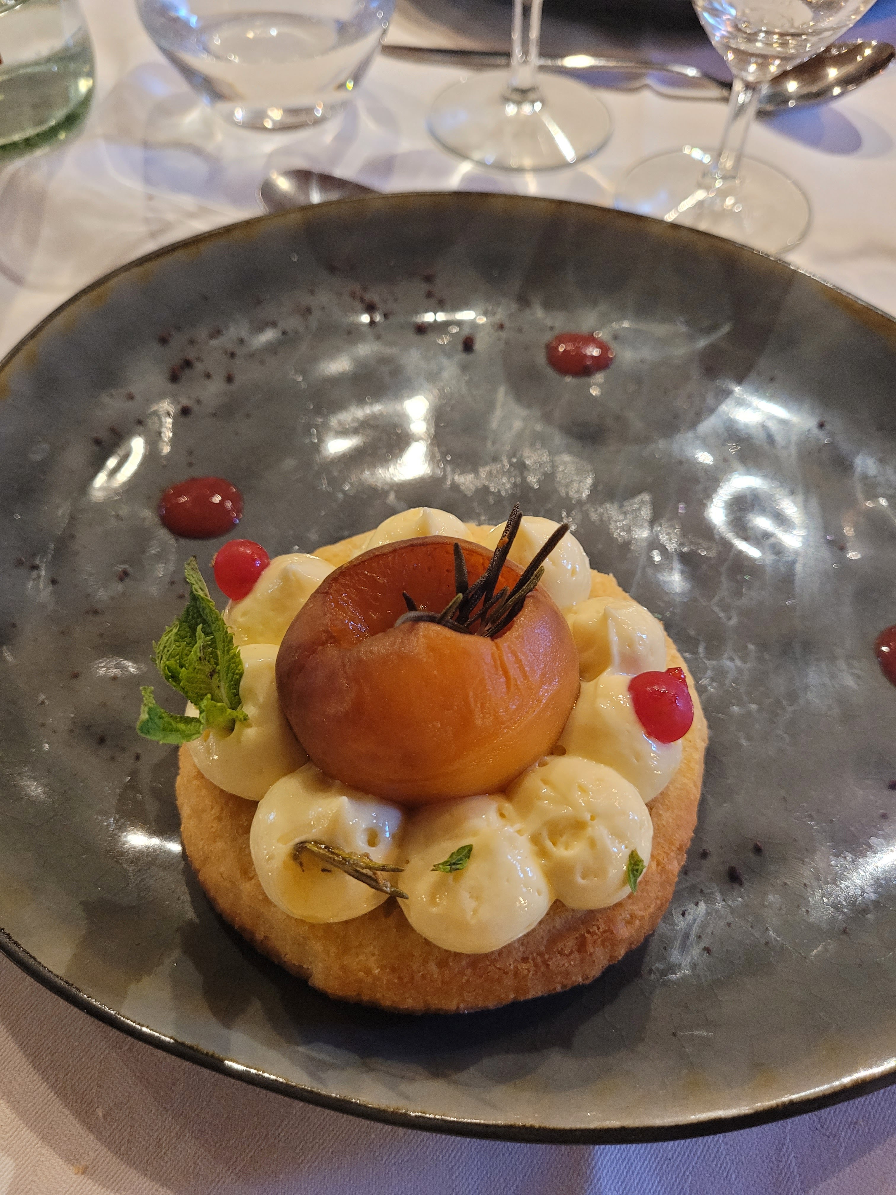 Le lieu est joli mais nourriture pas à la hauteur de nos attentes (avec notamment souris d'agneau très dure (surgelé ?) et une crème fouettée tournée)