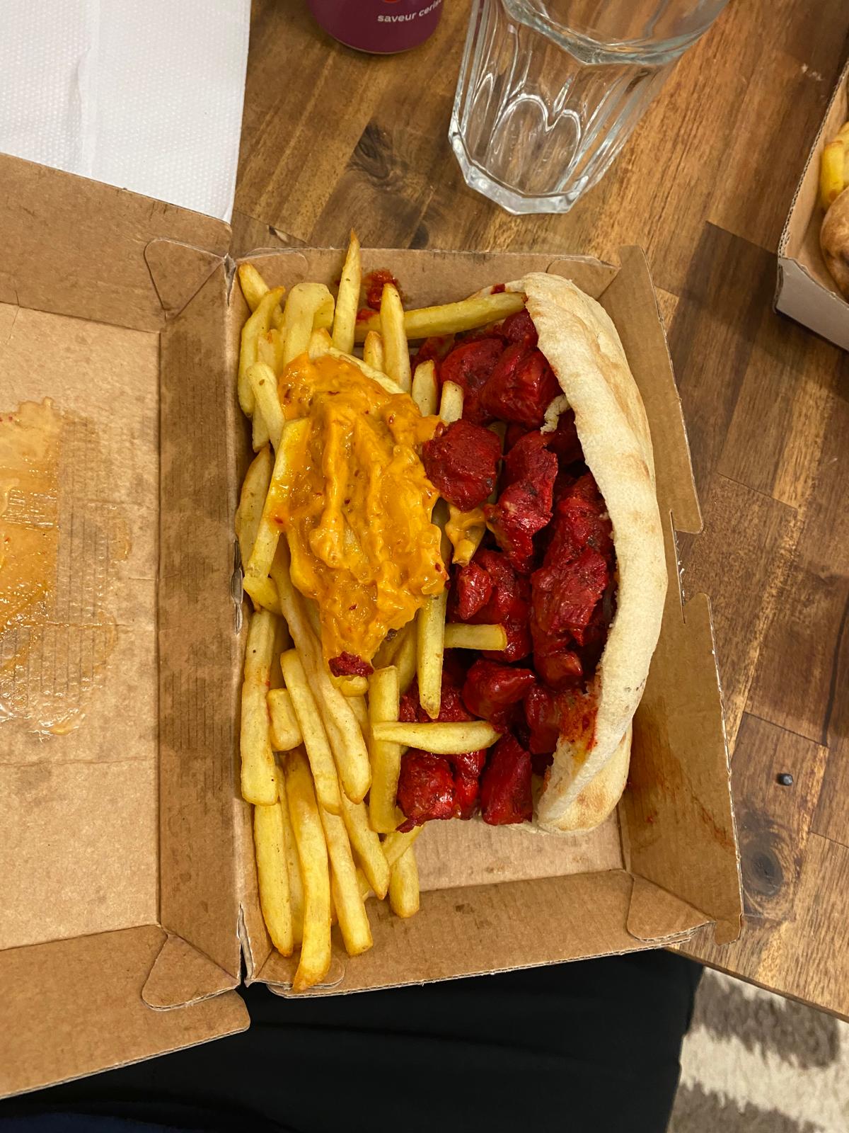 Bon, mais clairement surcôté quand les gens disent que c'est le meilleur snack de l'île de France. C'est bon mais pas exceptionnel. J'ai connu des poulets rouge bien plus savoureux que celui là. Sinon à part ça très bon accueil et malgré le monde les frères sont cool et accueillant et souriant.