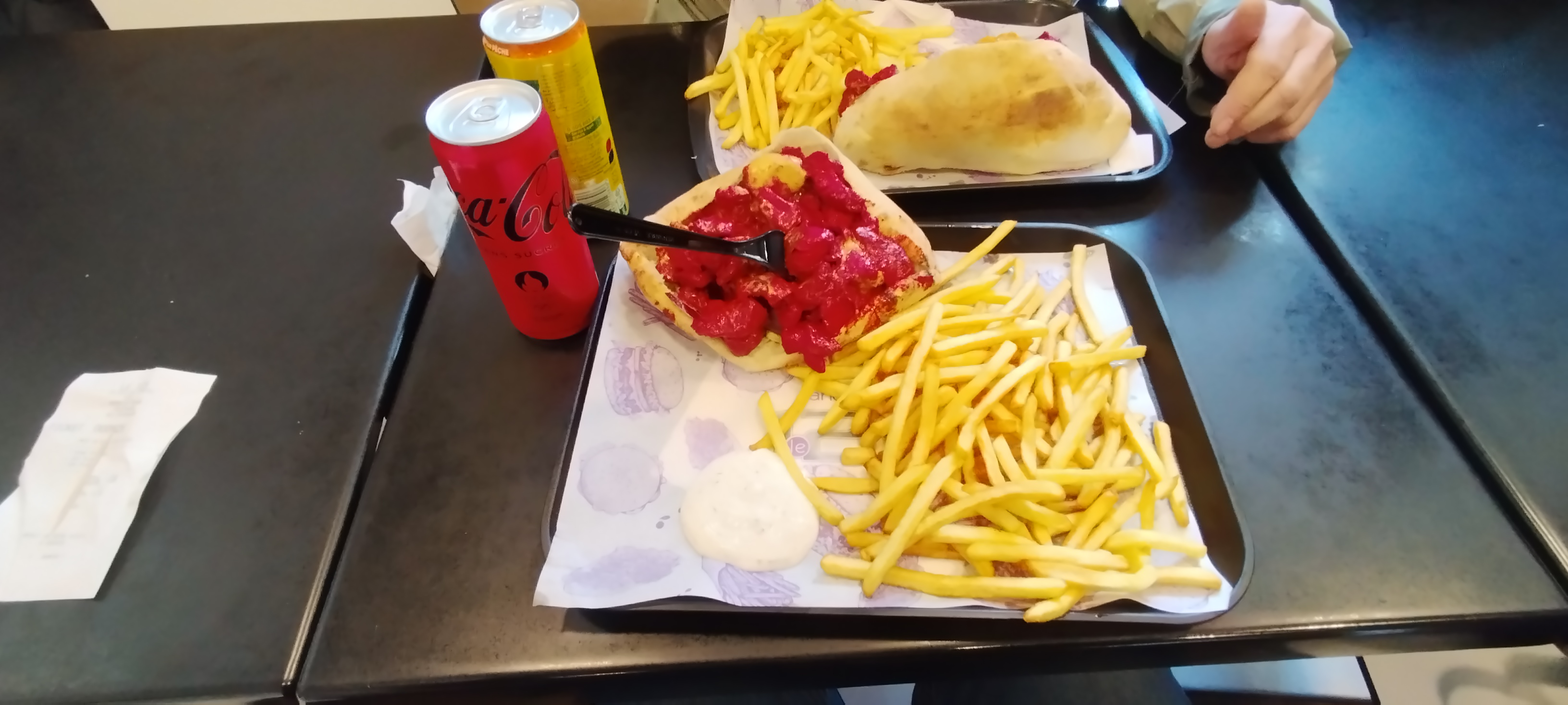 Viande fraîche et pain frais, Une dizaine de personnes avant nous et beaucoup de monde à l'intérieur, Nous avons été servis en 12min seulement malgré le monde !! De plus la nourriture est délicieuse et le spécial à la sauce paprika est excellent