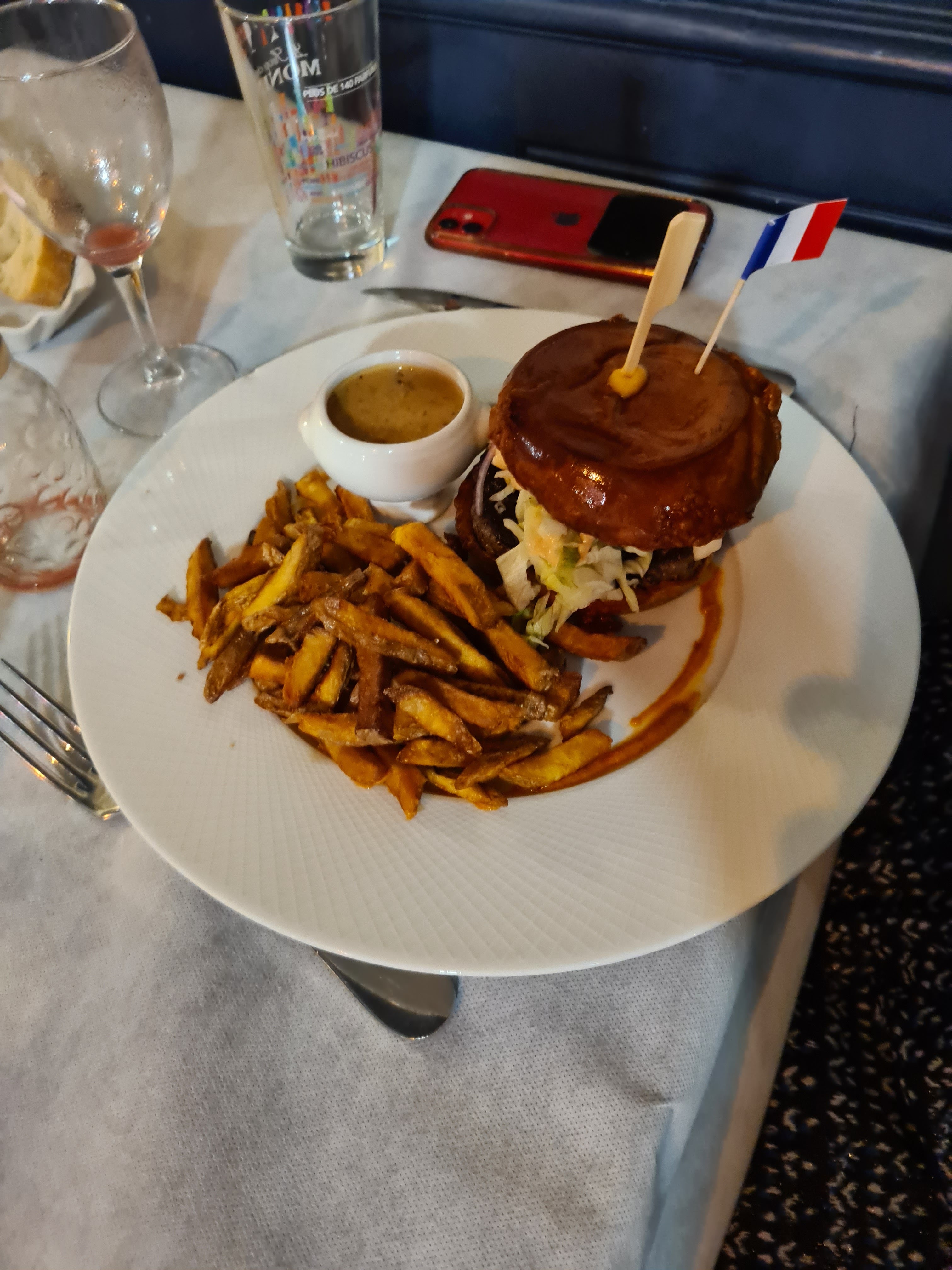 Une belle découverte. Comme le restaurant fermait bientôt le menu était imposé, petite déception au départ, je n’aurais pas du Les frites sont très bonne, la viande de belle qualité. Mention spéciale pour la sauce. Crème brulée très fondante, bien crémeuse.
