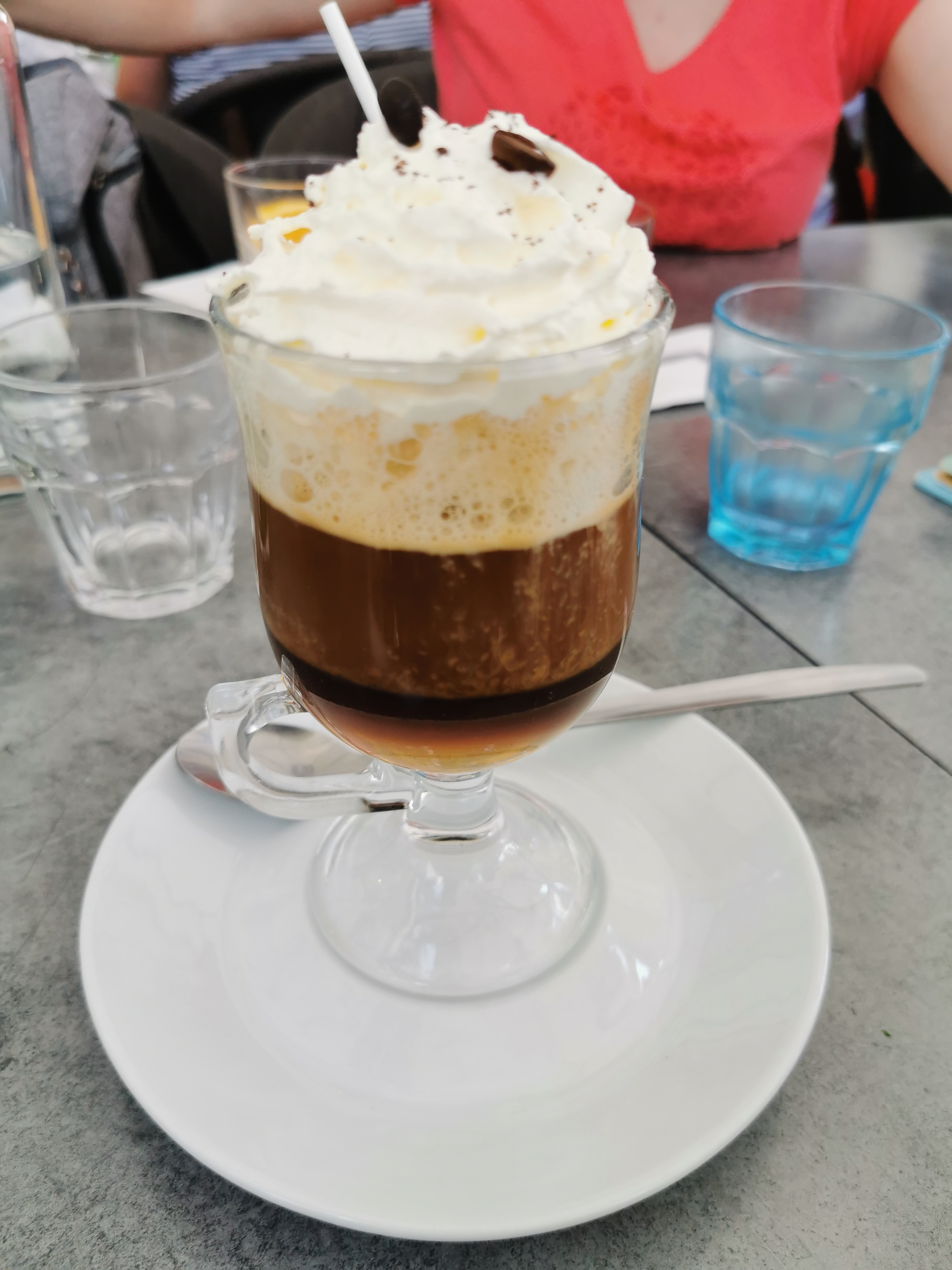 Agréable déjeuner sur la terrasse ombragée du 1930, bons cocktails, plats copieux et délicieux .... et pour finir par un Irish Coffee.