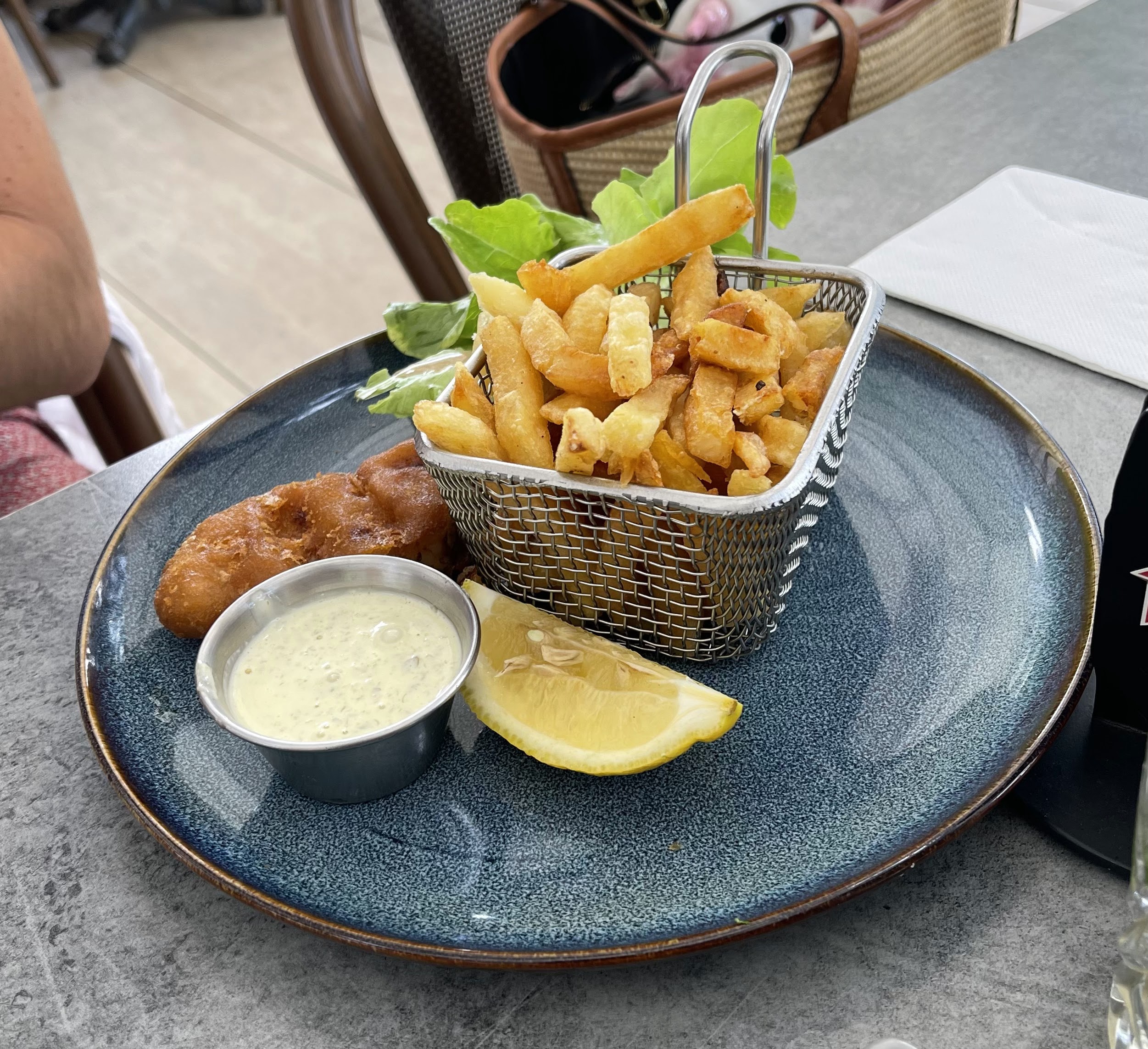 Trop d à peu près 1h15 d attente entre l'entrée et le plat Fish and chips désastreux Friture d eperlan à revoir Il est temps que le cuisinier parte en vacances Ps :les serveuses sont sympathiques