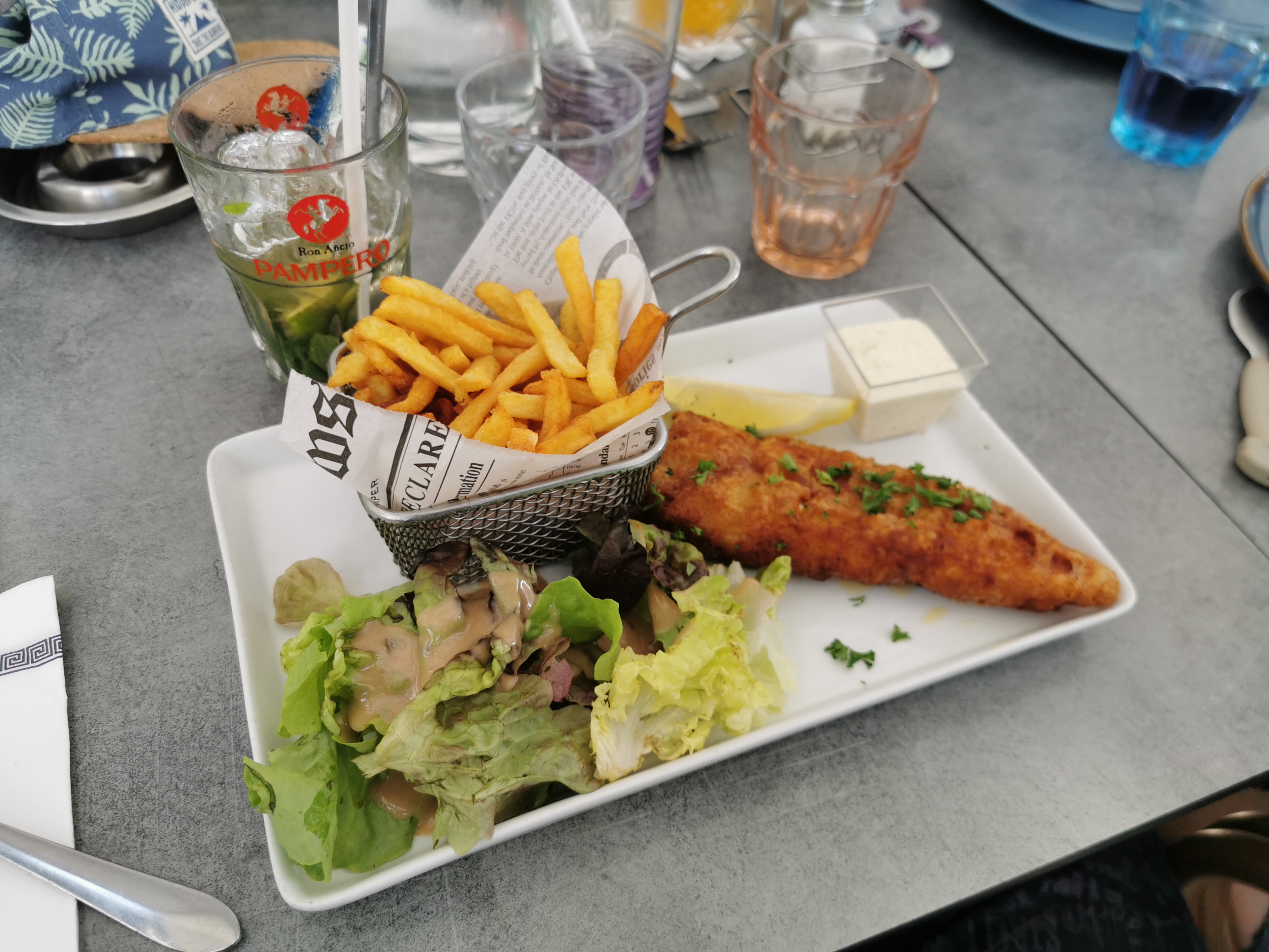 Une terrasse très sympa ! Les plats étaient très bons (le fish and chips est incroyable, avec une panure bien croquante), mais j'ai trouvé les plats assez chers même par rapport à la quantité (les prix de Paris sont présents...)