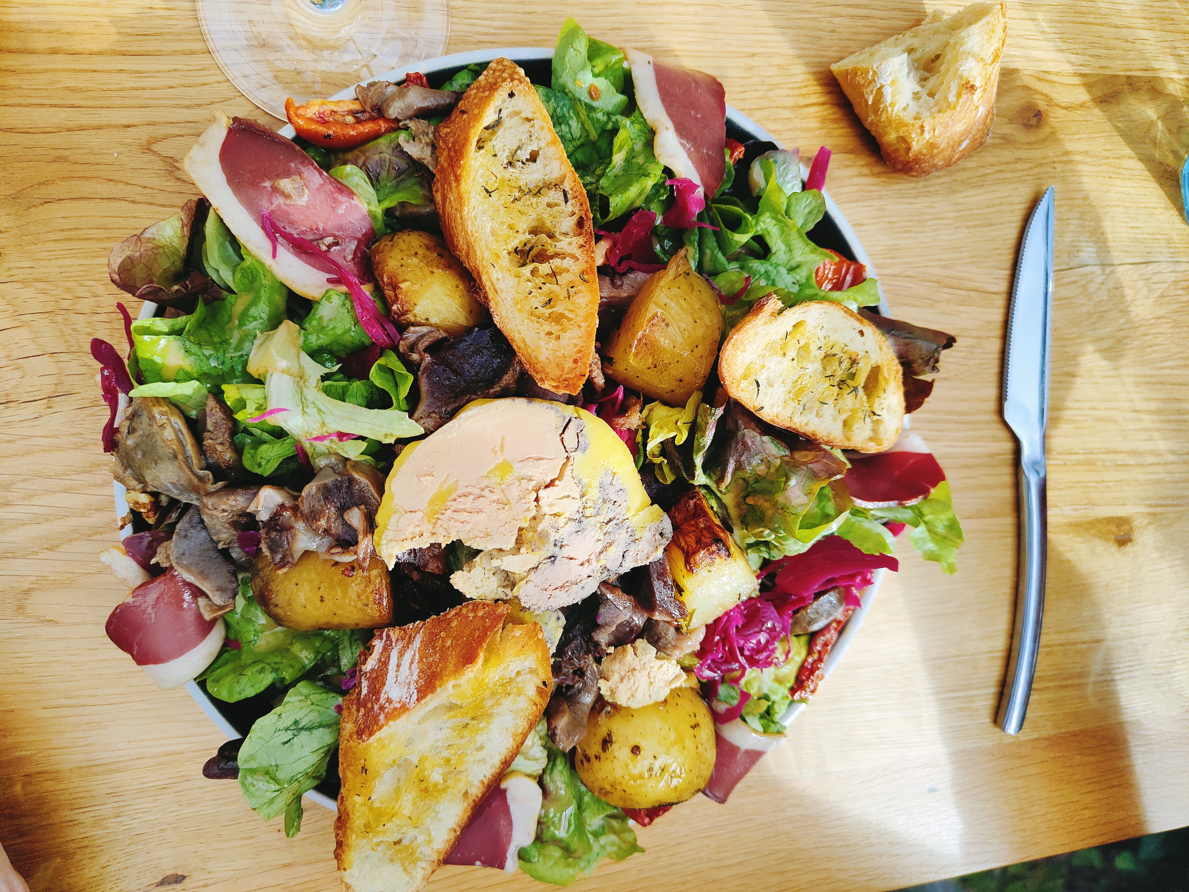 Petite soirée entre amis. Ambiance plaisante. Cadre top ! Service très sympathique . Je reste un peu sur ma fin ( et faim) quand à la qualité de ma salade qui me faisait pourtant tellement envie ! Les tartines de Tome de Rhuys [ taille apero ] et fromage tellement cuit que le tout aurait été mieux servi en croûtons ! Dommage ! Mon mari lui salivait à l'idée de terminer son dîner par 1 pain perdu !? Qui n'avait que le nom ! Une banale tranche de brioche sortie du paquet avec 1 trait de caramel dessus et une boule de glace vanille à côté.... C'est dommage !