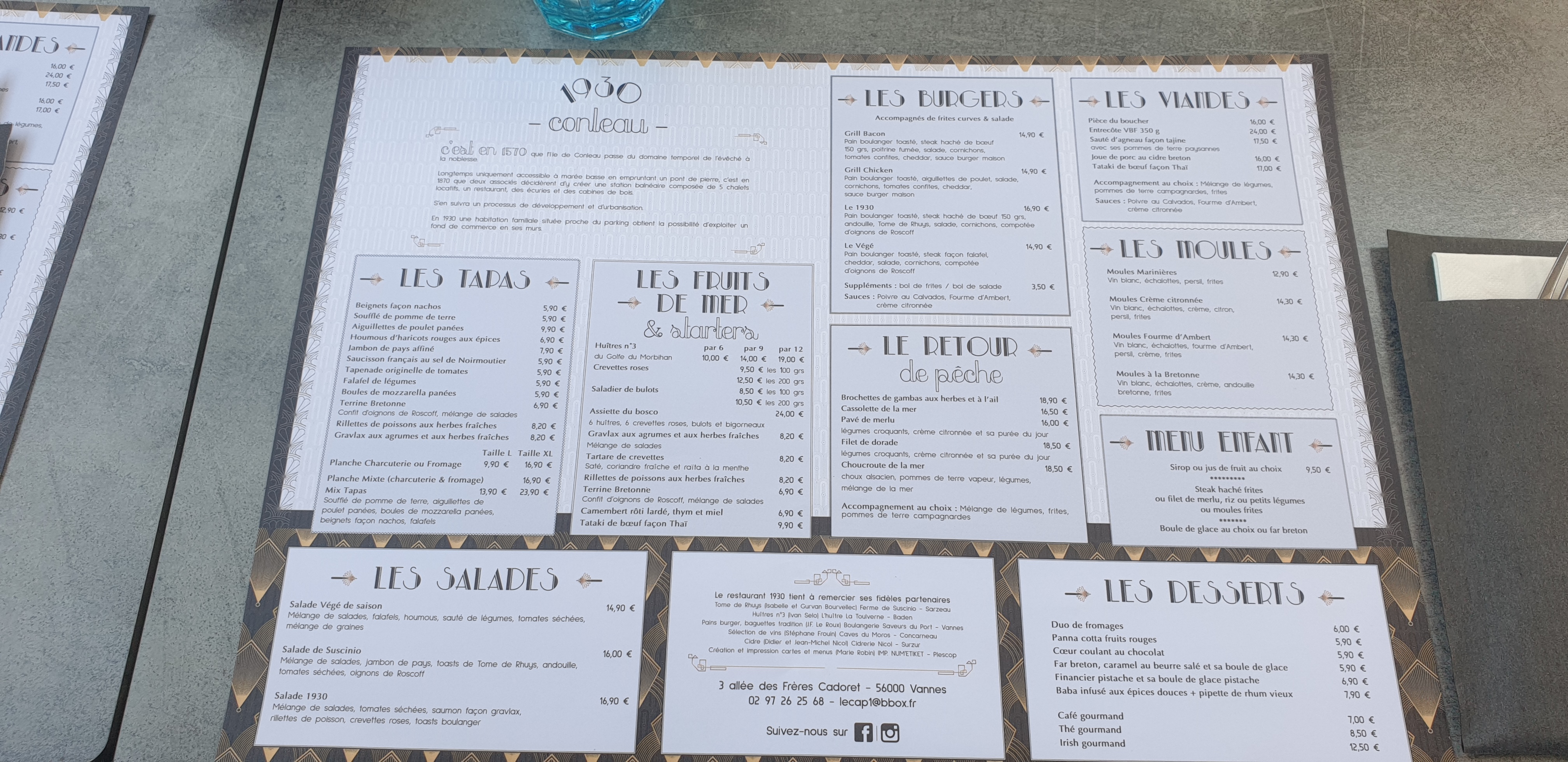 pourquoi notre retour est rejeté quand on fait de bons retours ????? Nous tenions à vous remercier : Restaurant « 1930 » Conleau - Vannes et à vous féliciter pour ce délicieux moment passé dans votre établissement pour mon anniversaire. Un plaisir pour les yeux avec cette décoration éblouissante que vous avez faite rien que pour nous ! Tout a été parfait, l'accueil, le service, le repas et les vins. Merci de tout coeur à MARIE (organisatrice) personne adorable, à l’écoute, réactive dans l’organisation et enthousiaste. Par chance, des gens comme vous existent encore : Nous vous remercions. Félicitions au chef et son équipe pour son excellent repas et l'excellence de ses plats. De plus ce restaurant est super bien placé sur la presqu’ile de Conleau…..une parenthèse de verdure au cœur de Vannes située au sein du Golfe du Morbihan. Un moment inoubliable pour une journée exceptionnelle ! Bravo MARIE et à son équipe !! M&A