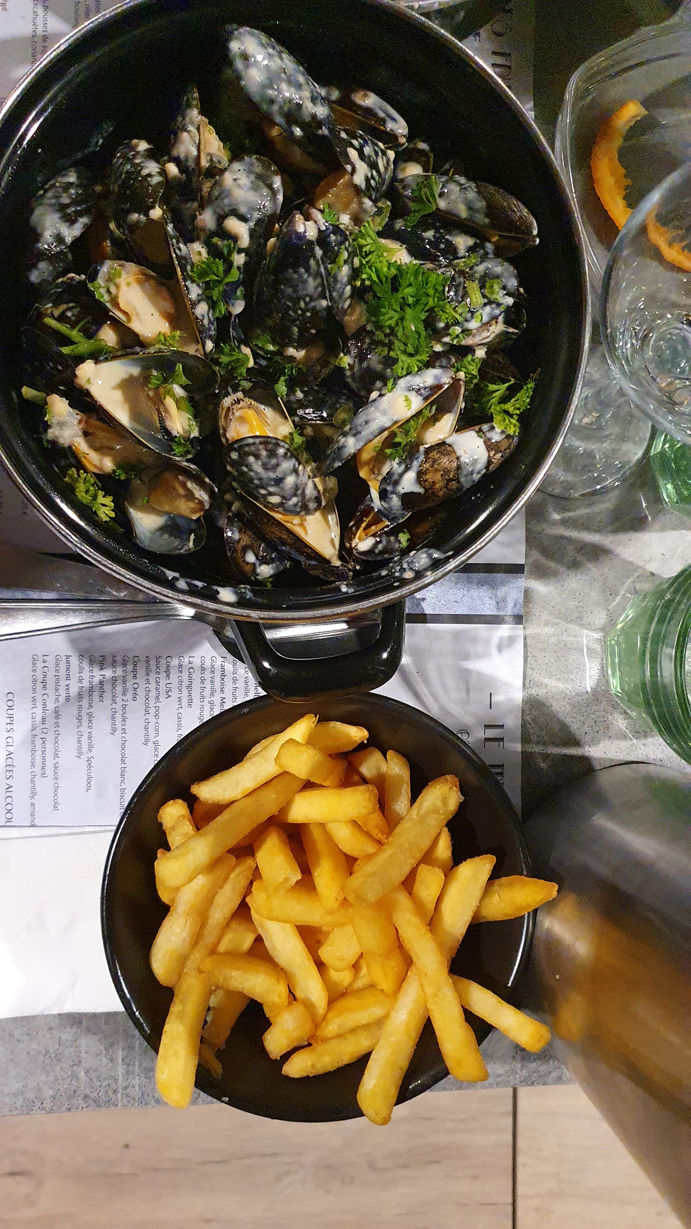 accueil vraiment top ! L'équipe est très sympa, très souriante! Le service était rapide (appréciable avec un enfant en bas âge !) et les moules frites excellentes ! Le cadre est évidemment magnifique.