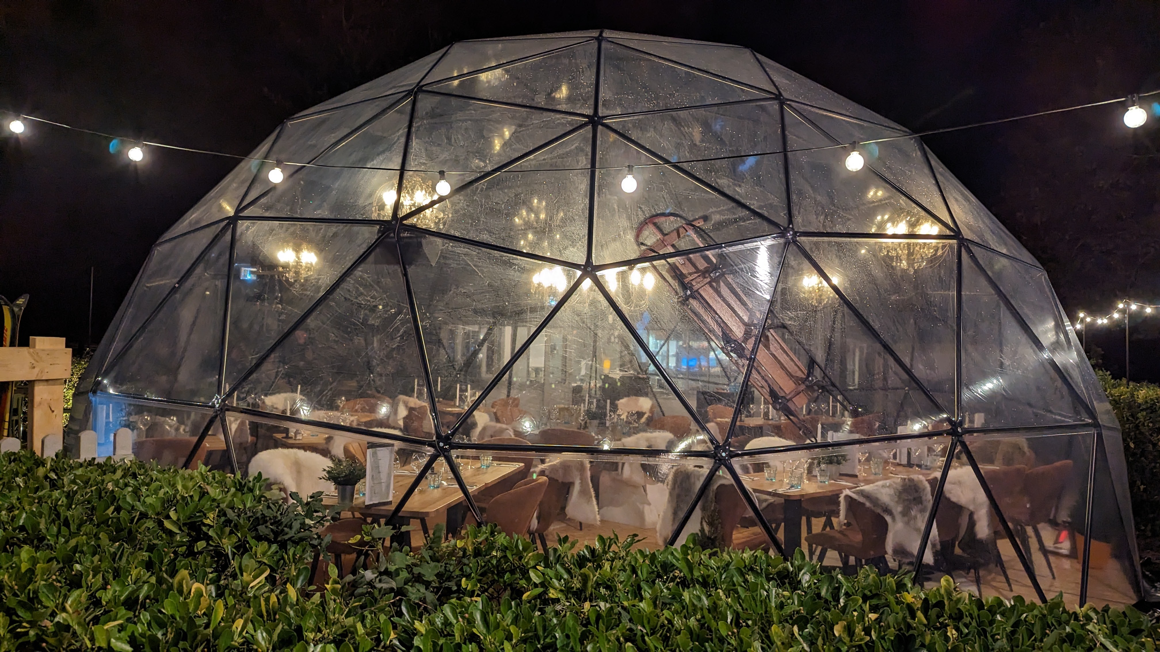 Le hasard fait bien les choses, très belle découverte même s'il n'y avait plus de place dans la bulle (nous n'avions pas réservé), l'intérieur est très cosy, les fauteuils confortables, les tables très grandes, les wc très sympa en mode cabane/sauna. Cette bulle est une très bonne idée, en voyant les photos de nuit dans les avis, cela donne envie d'y revenir. J'ai goûté ma première raclette au saumon c'était une belle expérience avec l'appareil typique. Je ne mets pas la 5eme étoile pour le service pour encourager à mieux faire. Il y avait beaucoup de monde ce dimanche, mais le personnel a fait beaucoup d'erreurs. Dans les plats, dans l'encaissement, oubli de pain .. mais pas de quoi en faire un fromage (à raclette), donc je m'arrête là... nous reviendrons. Merci