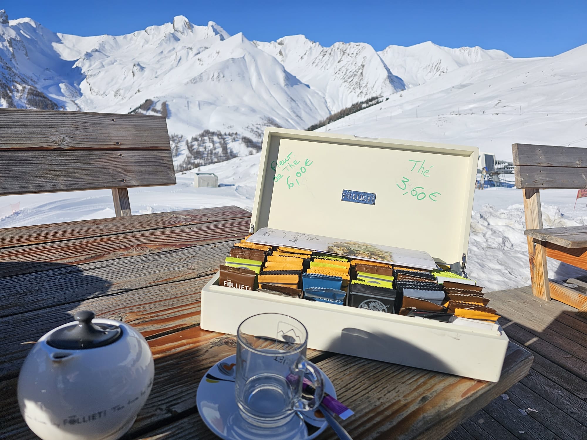 Nous avons déjeuné ce weekend après une matinée de ski bien remplie. Nous nous sommes régalés et avons passé un très bon moment dehors avec une superbe vue. Un moment très agréable ! Mentions spéciale a la carte qui détaille les allergènes, une attention particulière qui fais plaisir pour l'inclusivité !
