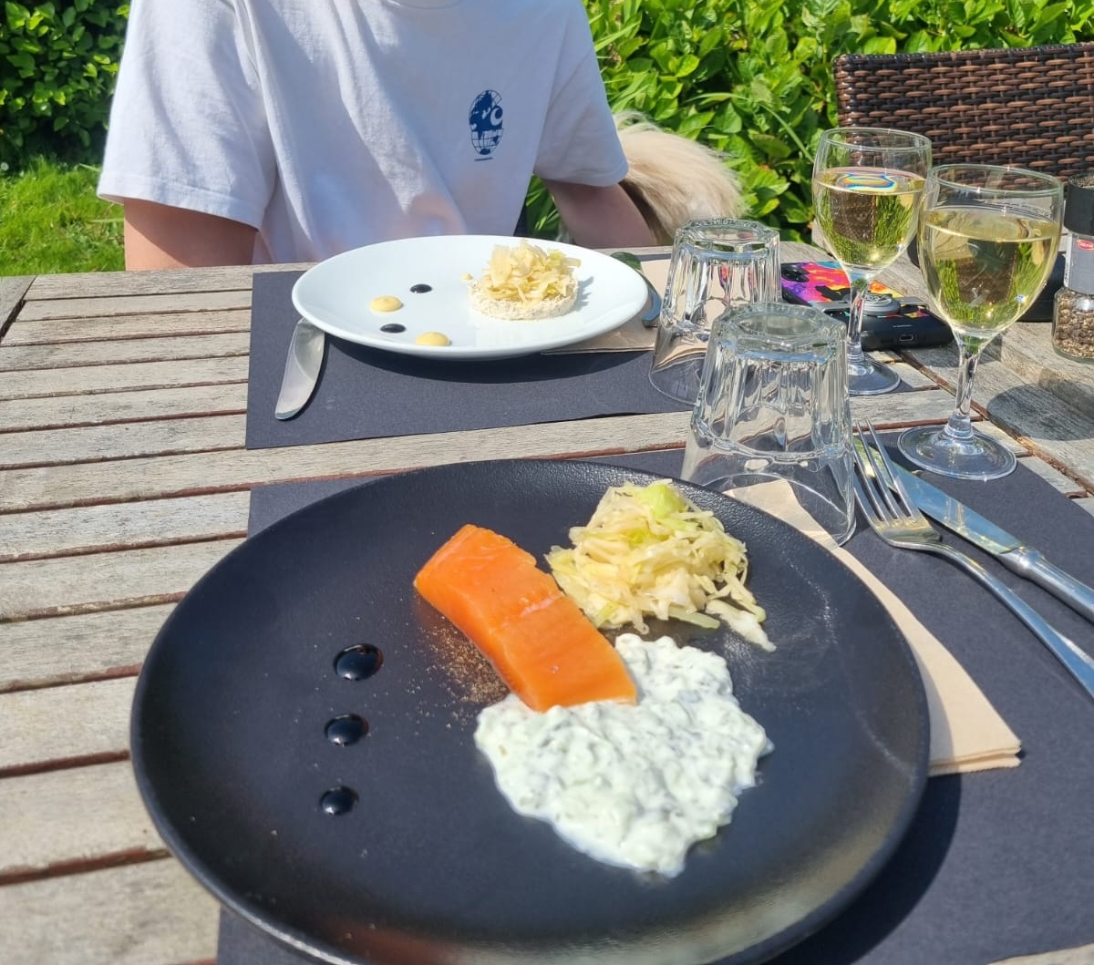 Un accueil chaleureux et souriant, un chef qui aime les bons plats, un parking à vélos et un temps magnifique ! On recommande sans hésiter ! les plats sont délicieux et la terrasse très agréable à l'abri du passage. Merci pour ce beau moment