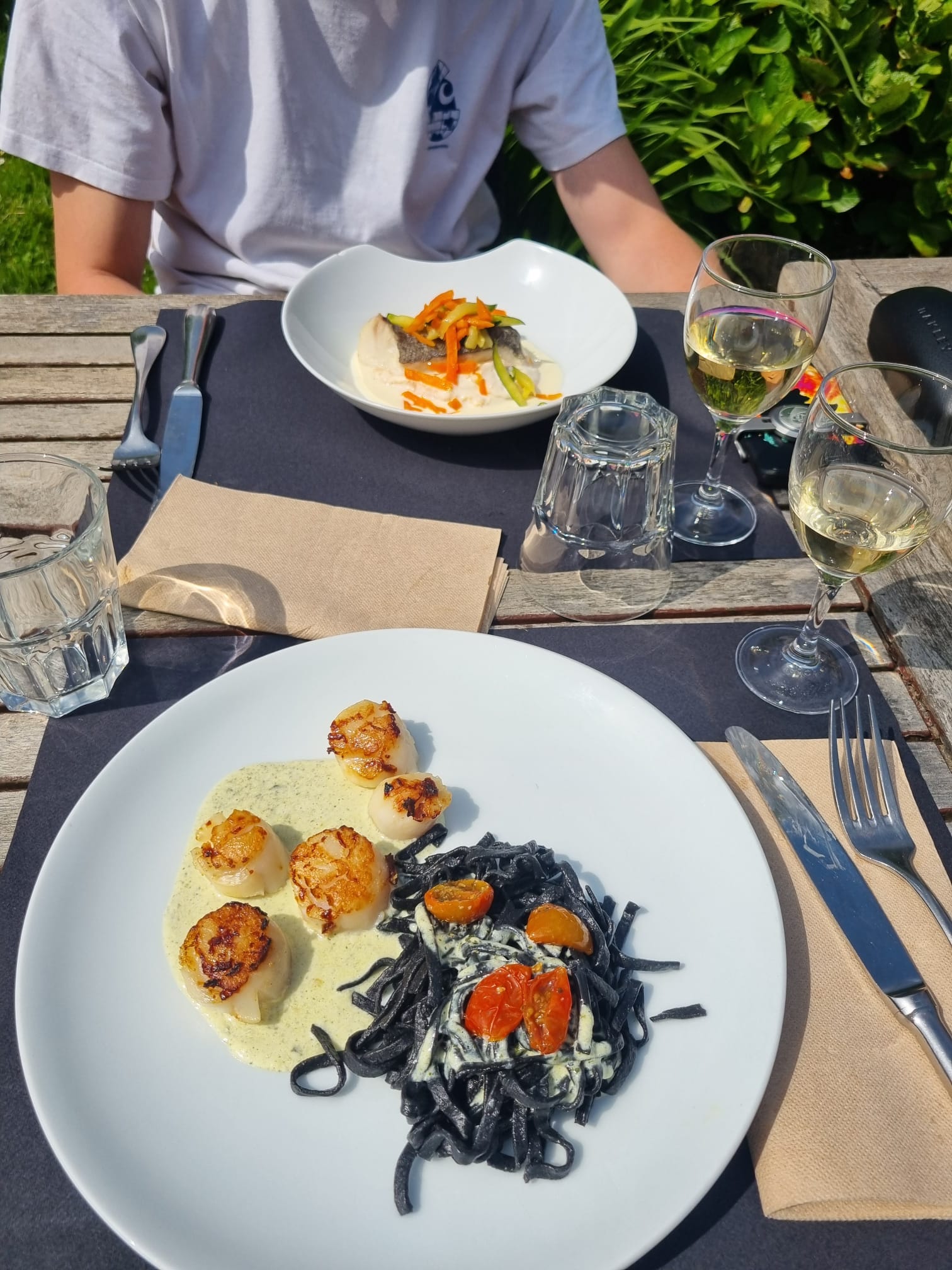 Belle terrasse, service aimable et cuisine délicieuse. J'ai particulièrement apprécié les coquilles St Jacques au chorizo.