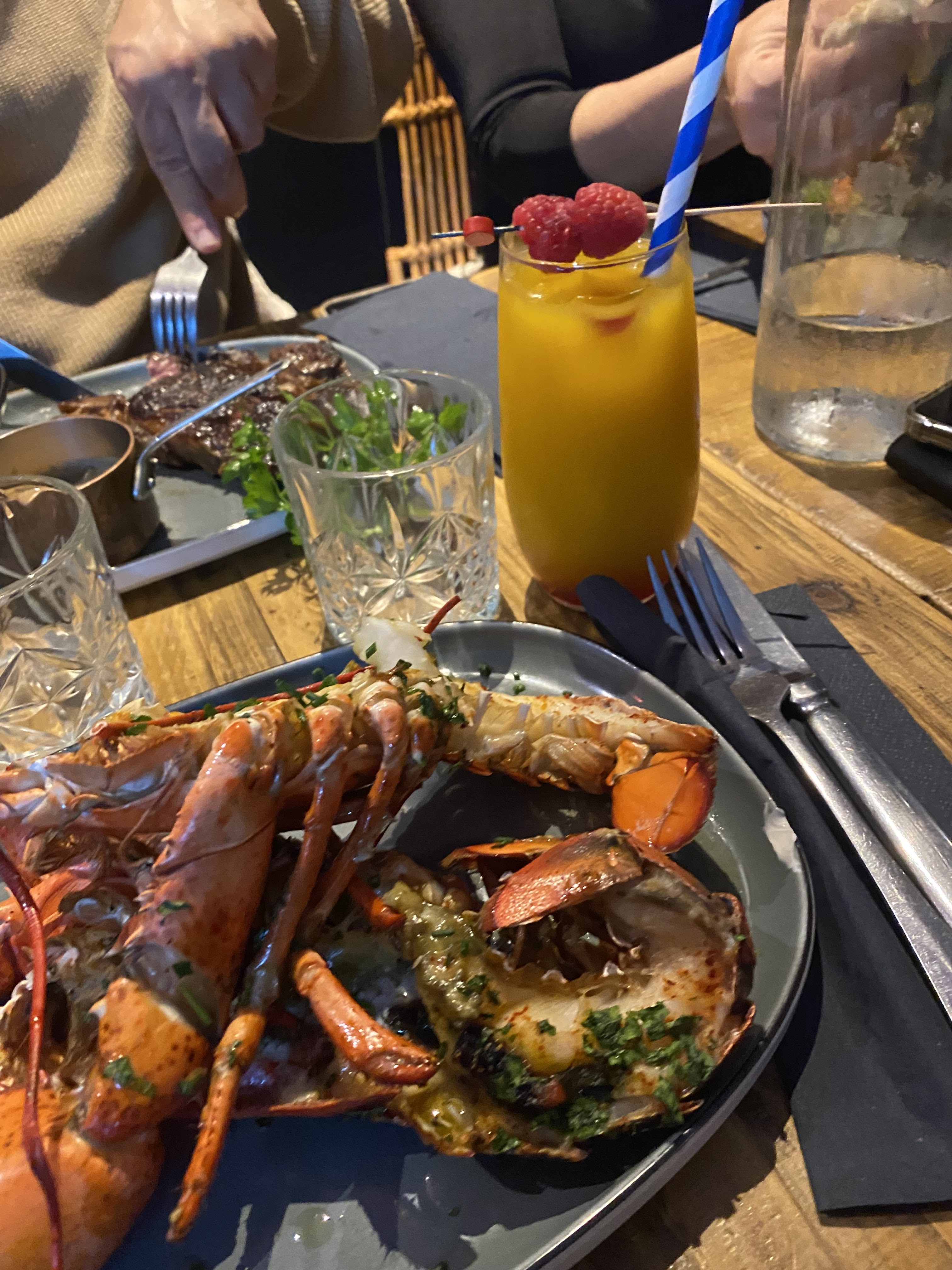 Très bons cocktails, les pâtes et son demi homard un délice !! Très bonne cuissons pour l’entrecôte et bonne sauce aussi ☺️ On reviendra !