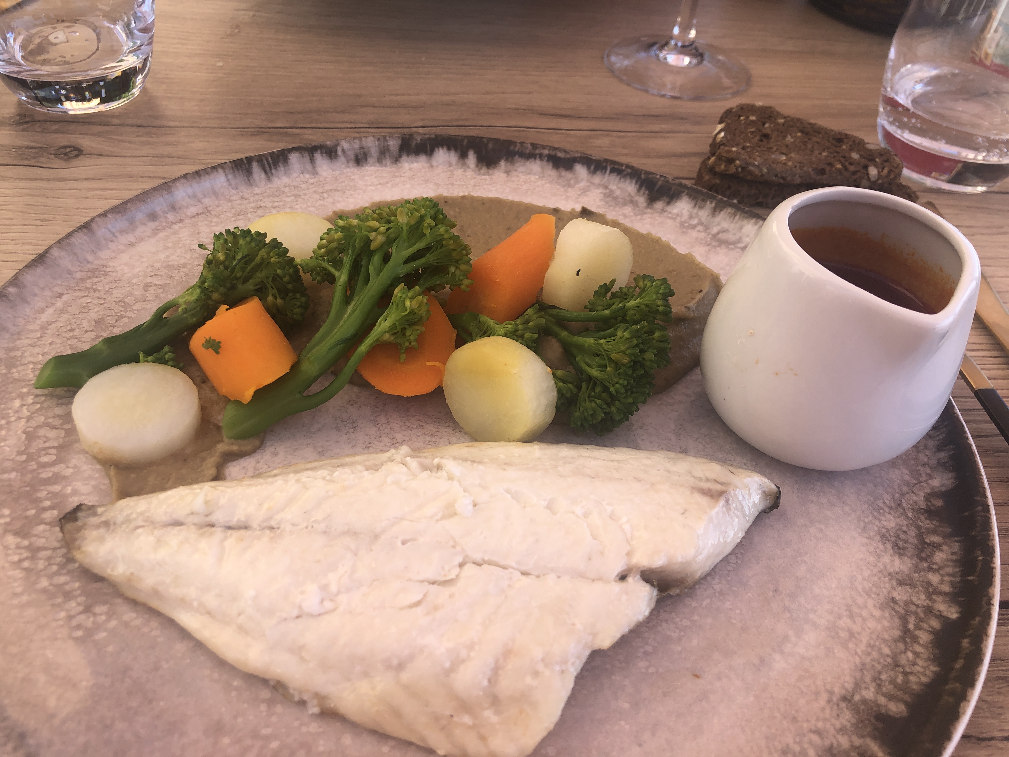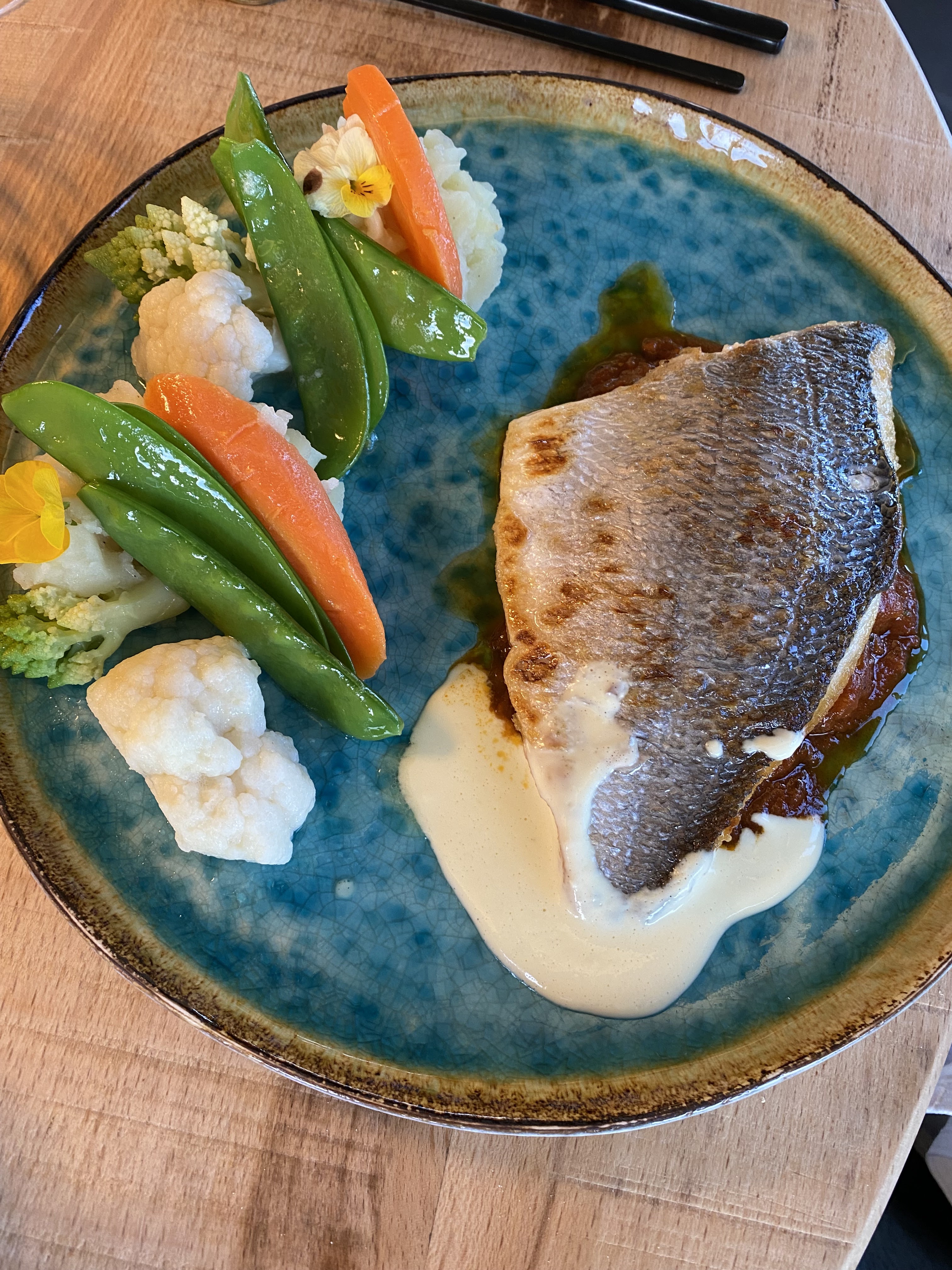 Un cadre épuré, Un accueil chaleureux. Plat très goûteux, Merveilleuse farandole de légumes & de fleurs en accompagnement. Dessert divinement bon. Merciii 🙏 pour cet Agréable Moment. Je Recommande❤️