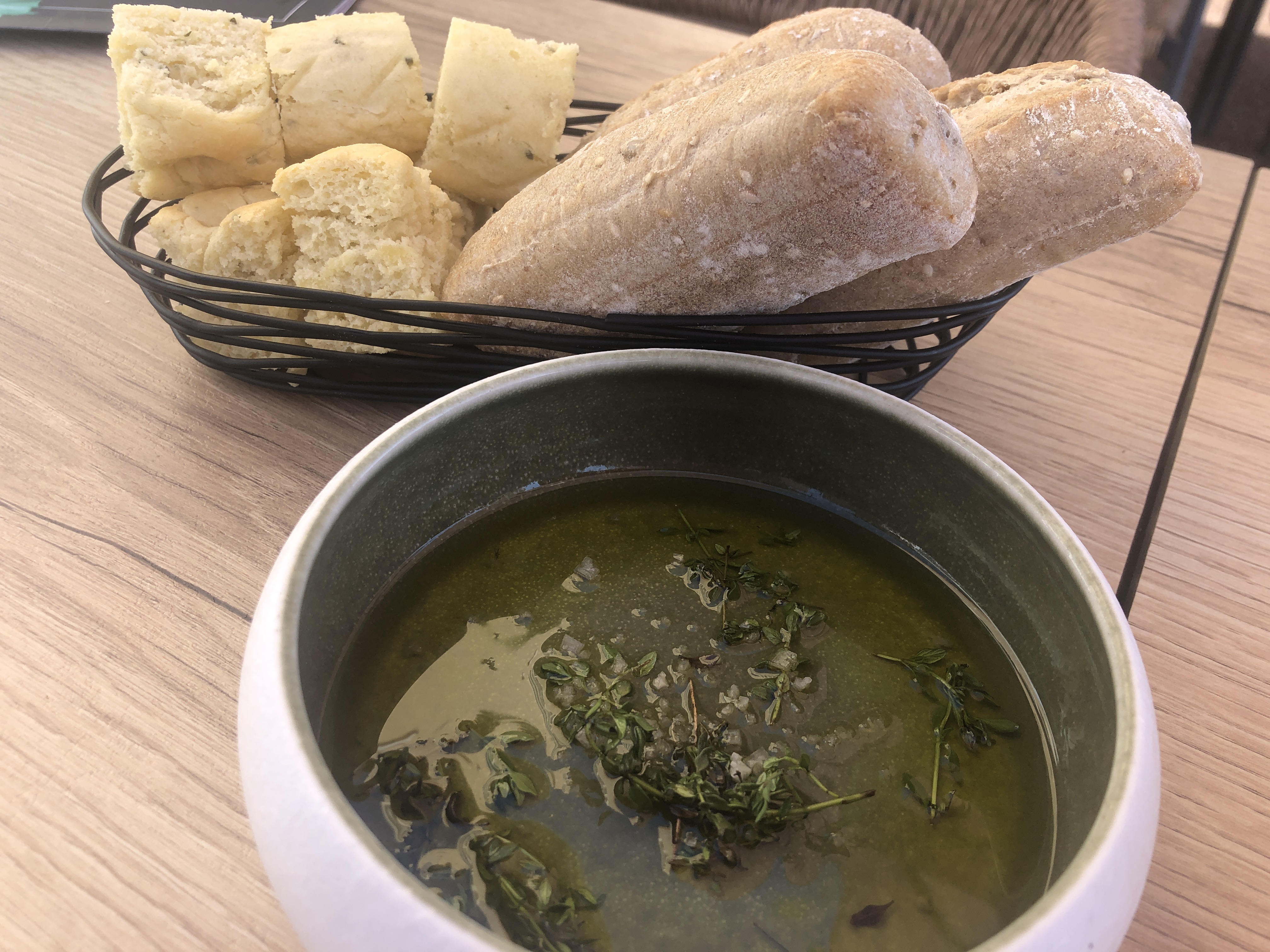 Mise en bouche ( à base d huile d'olive ) pas géniale. Pour le repas ( menu découverte ) entrée , plat et dessert excellents. Je recommande.