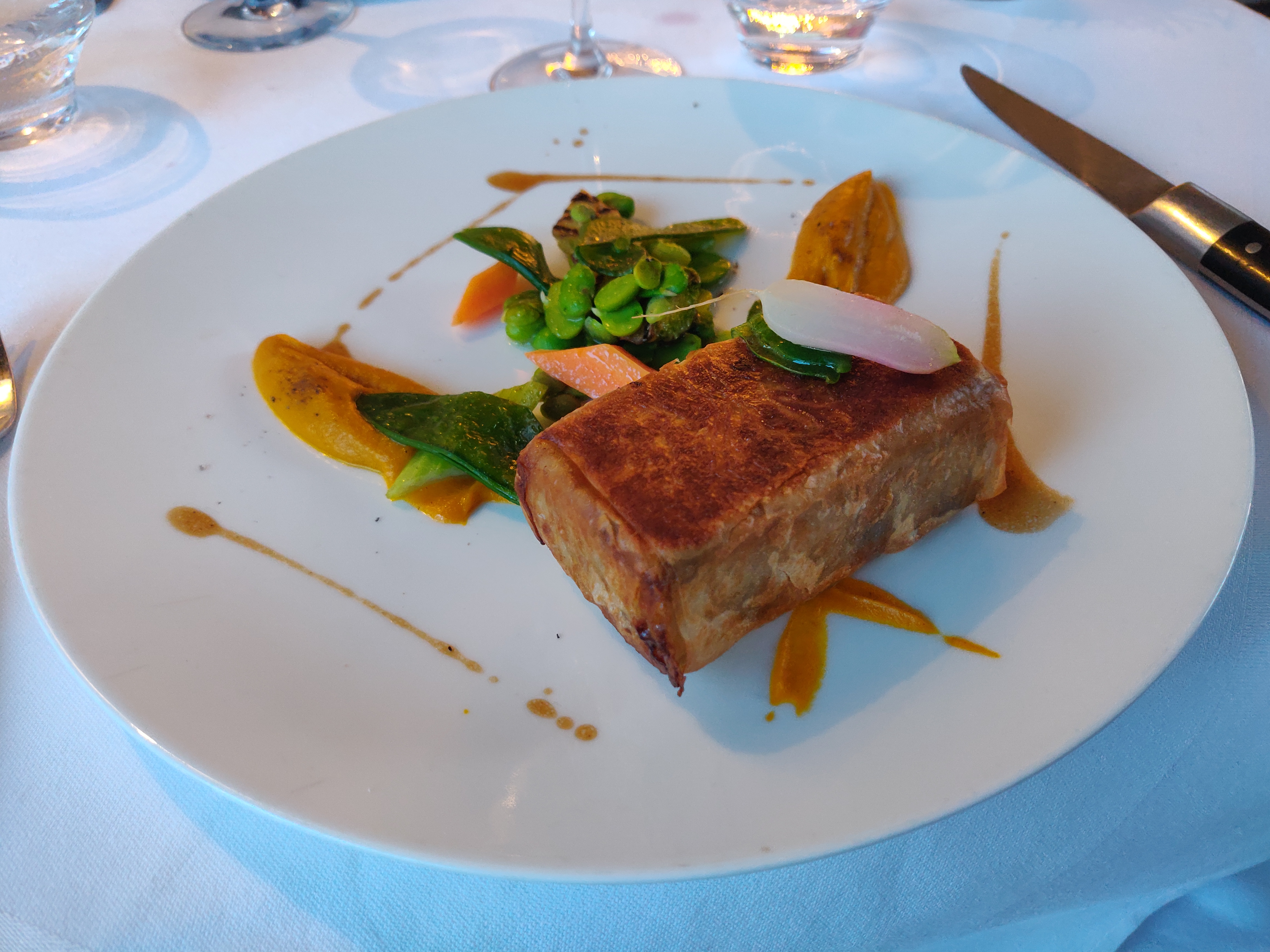 Un super moment. de l'entrée au dessert, la qualité des produits, la présentation et les saveurs rendent ce repas divan. Vive la Gastronomie.