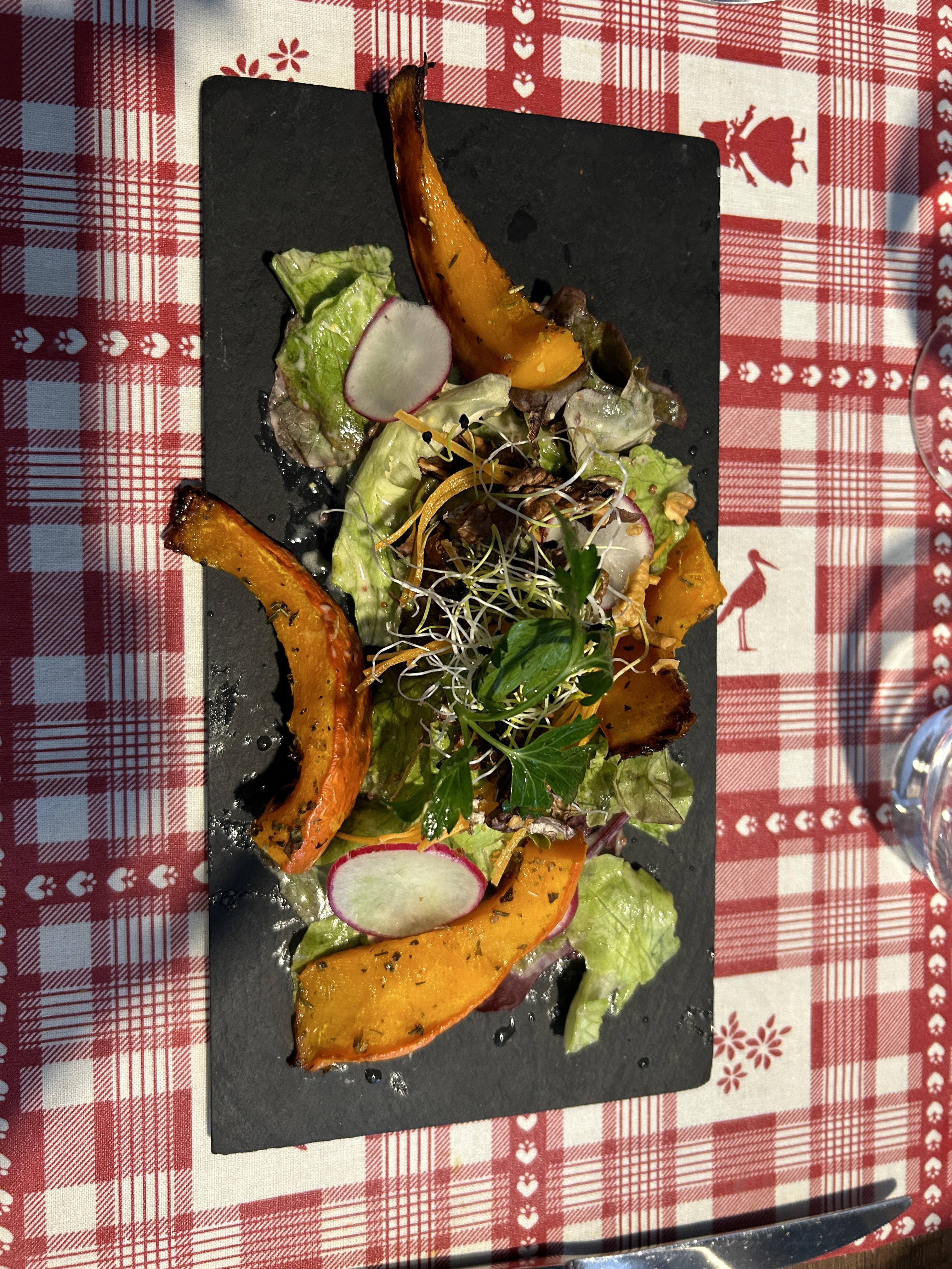 Du fait maison très bon . Bon accueil cadre simple et sympathique. Un air d Alsace à vichy original . 👍