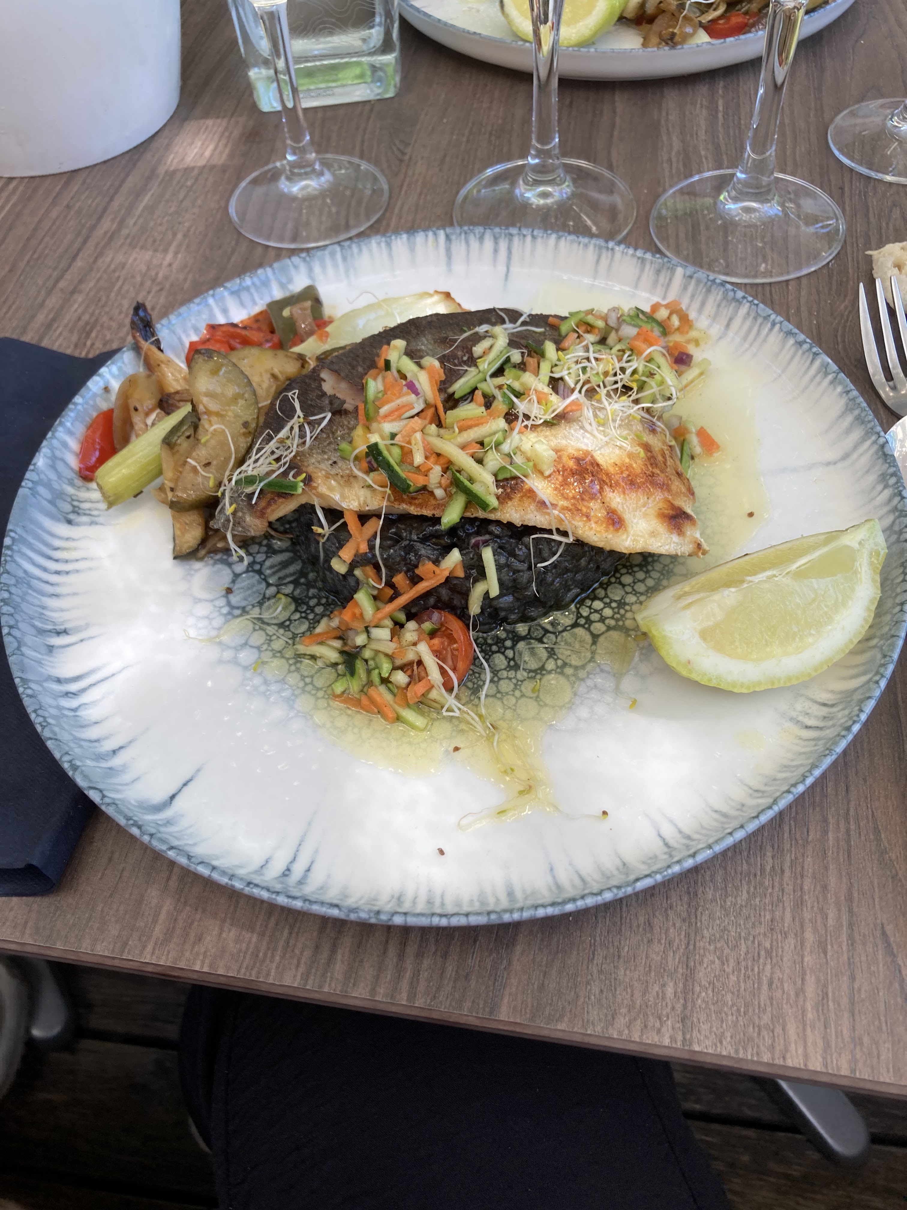 Nous avons fait un repas organisé par notre patron, menu choisi à l'avance, le poisson beaucoup trop cuit, le veau semblait avoir bouilli, impossible de la manger, à 22h on nous fait comprendre par la serveuse qu'elle part car levée tôt le lendemain, on se retrouve seul et à 10h1t on nous eteindre la terrasse voulant dire tout le monde dehors, pas cool du tout ils ne sont pas près de nous revoir