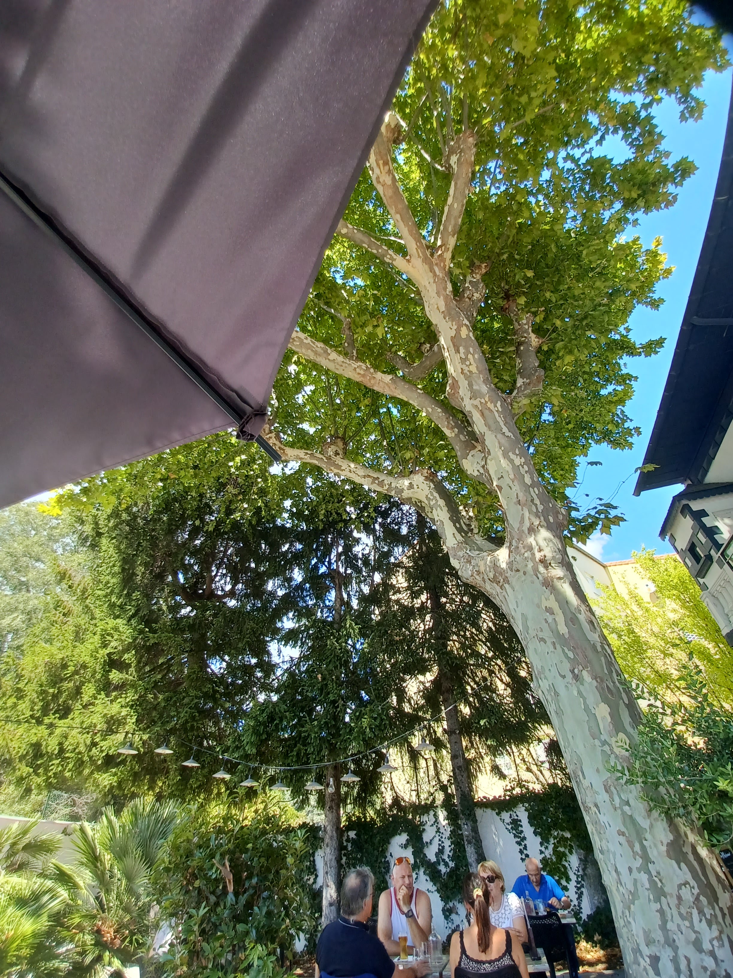 Superbe terrasse ombragée et super accueil. Très bonne cuisine originale à recommander